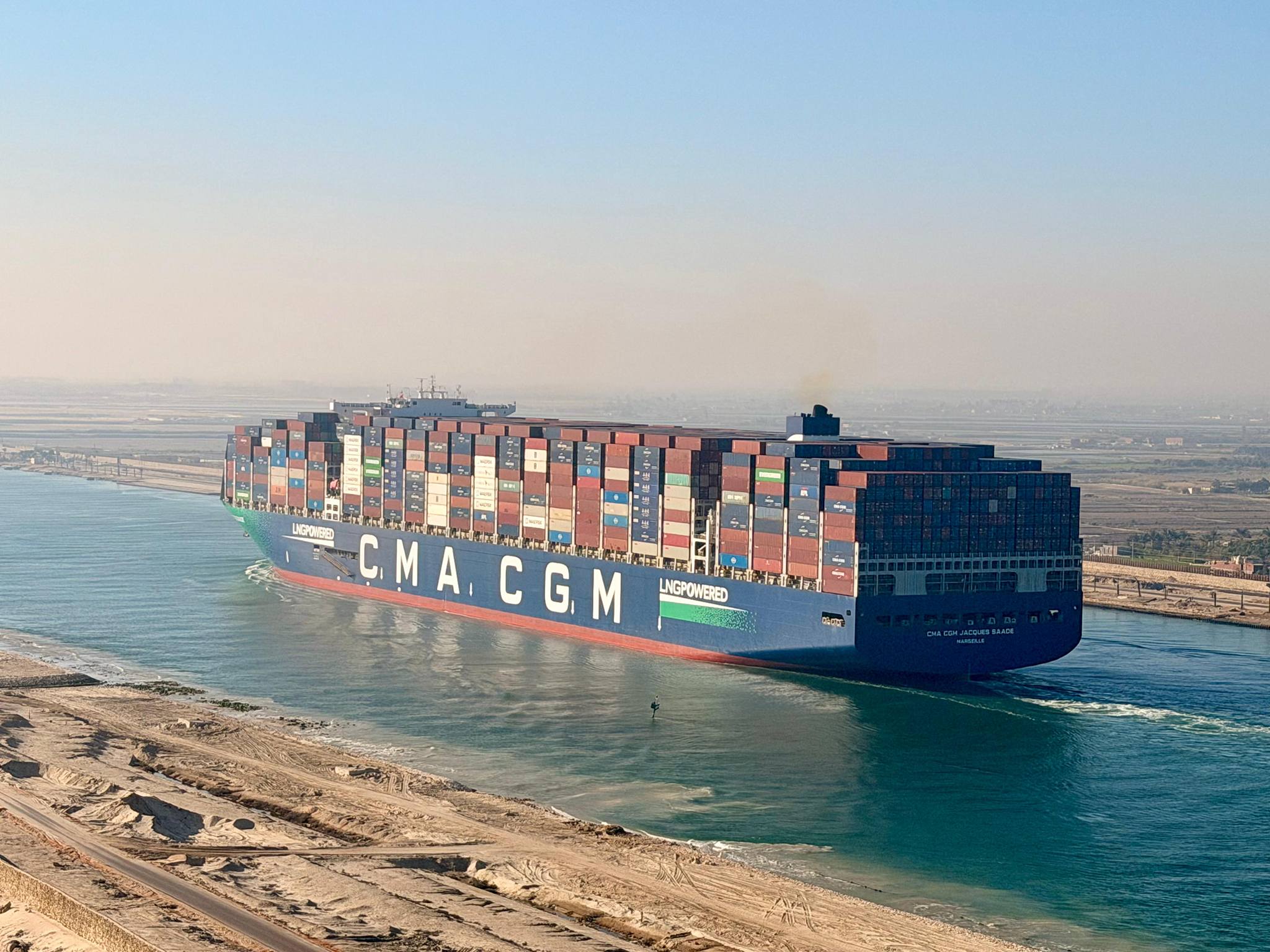 أعلنت هيئة قناة السويس عبور سفينة الحاويات العملاقة CMA CGM JACQUES SAADE، إحدى أكبر سفن الحاويات في العالم، ضمن قافلة الشمال، لتصبح أكبر سفينة حاويات تعبر القناة منذ عامين، وتعمل السفينة بالغاز الطبيعي المسال، وجاءت في رحلتها قادمة من المغرب ومتجهة إلى ماليزيا.