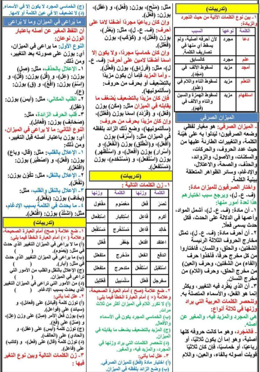 مراجعة صرف للصف الأول الثانوي الأزهري