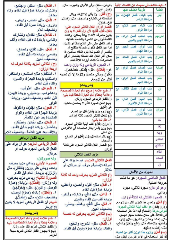 وتستعرض "تليجراف مصر" مراجعة الصرف للصف الأول الثانوي الأزهري والتي تشمل جميع أجزاء منهج الصرف الجديد :