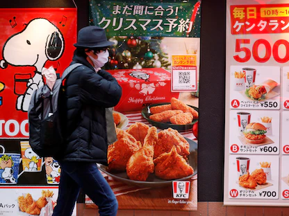بينما يكون الديك الرومي هو قلب مائدة الكريسماس في جميع دول العالم، إلا أن اليابان استغنت عن هذا الطقس واستبدلته بتناول وجبة من الدجاج المقلي من مطعم كنتاكي، نشأت تلك العادة منذ السبعينيات، ثم توارثتها الأجيال جيلًا بعد جيل حتى أضحت جزءًا راسخًا في الاحتفال.
