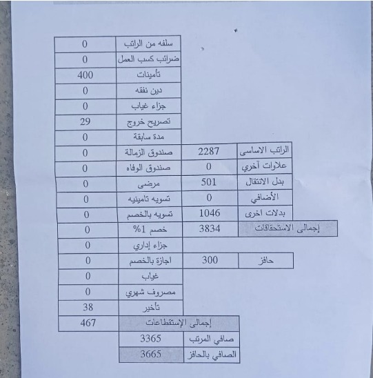 ويلفت إلى أن إيصالات الرواتب لا تحمل اسم الشركة، بما يمنع استخدامها كدليل رسمي في حال التقدم بشكاوى قانونية ضد الشركة، موضحًا أن عدد العاملين تراجع من نحو 3000 إلى 700 عامل فقط، وسط أجواء من الخوف تمنع كثيرين من الحديث علنًا.