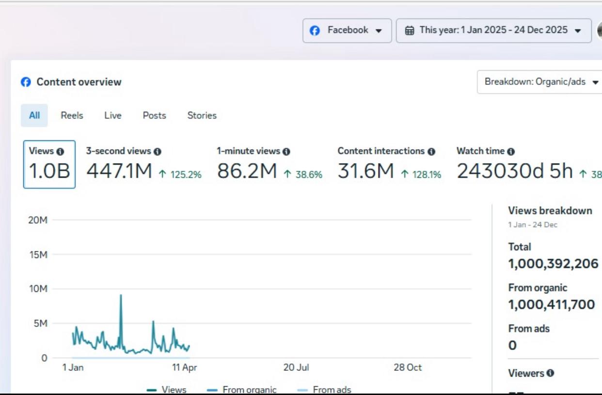 وتحققت مشاهدات الإعلامي الكبير بشكل حقيقي، اعتمدت على تفاعل الجمهور بشكل مباشر من دون إعلانات ممولة، وفقًا لإحصائية رسمية من شركة "ميتا".