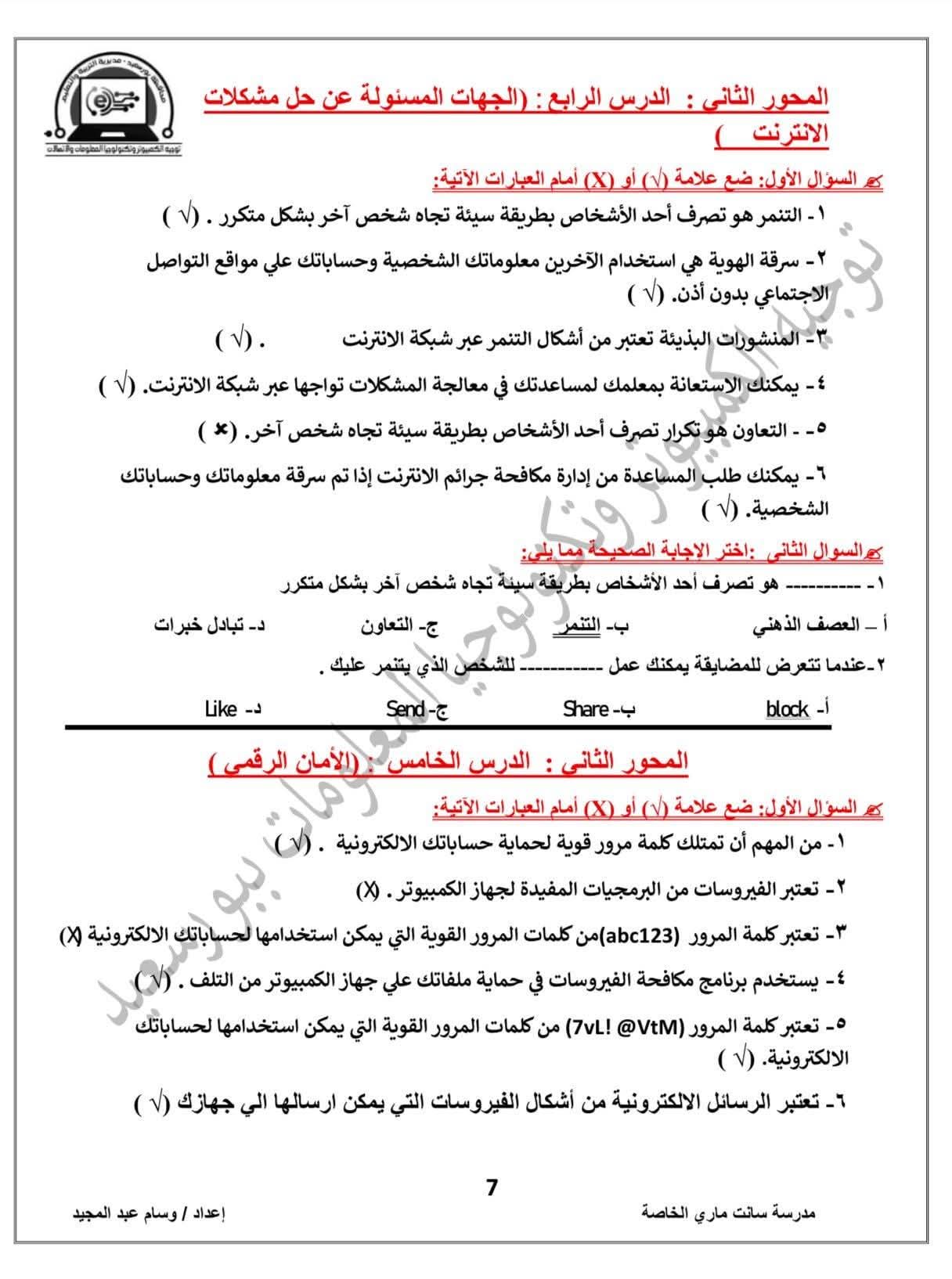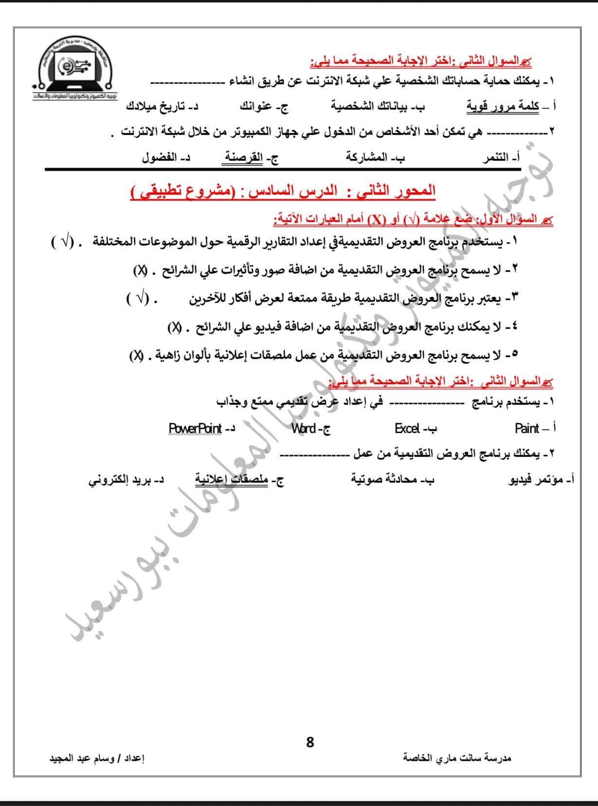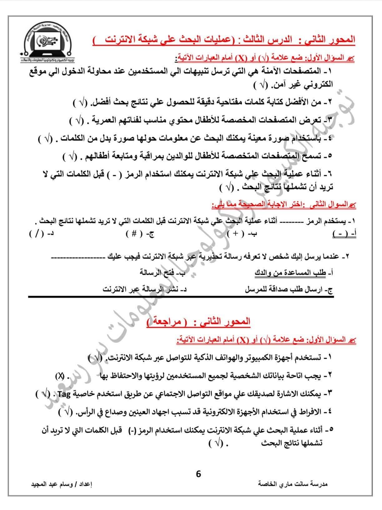 مراجعة ICT للصف السادس الابتدائي الفصل الدراسي الأول 2025-2026
