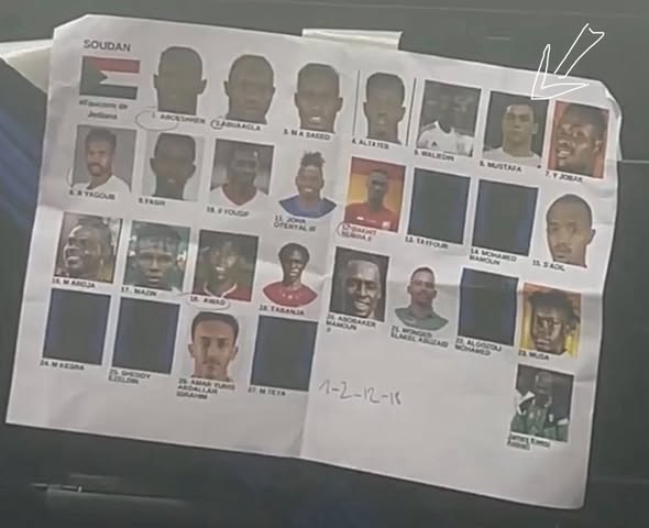 وأثناء المباراة، استعان أحد مصوري اللقاء بورقة تحتوي على صور لاعبي منتخب السودان للتركيز عليهم أثناء التصوير.