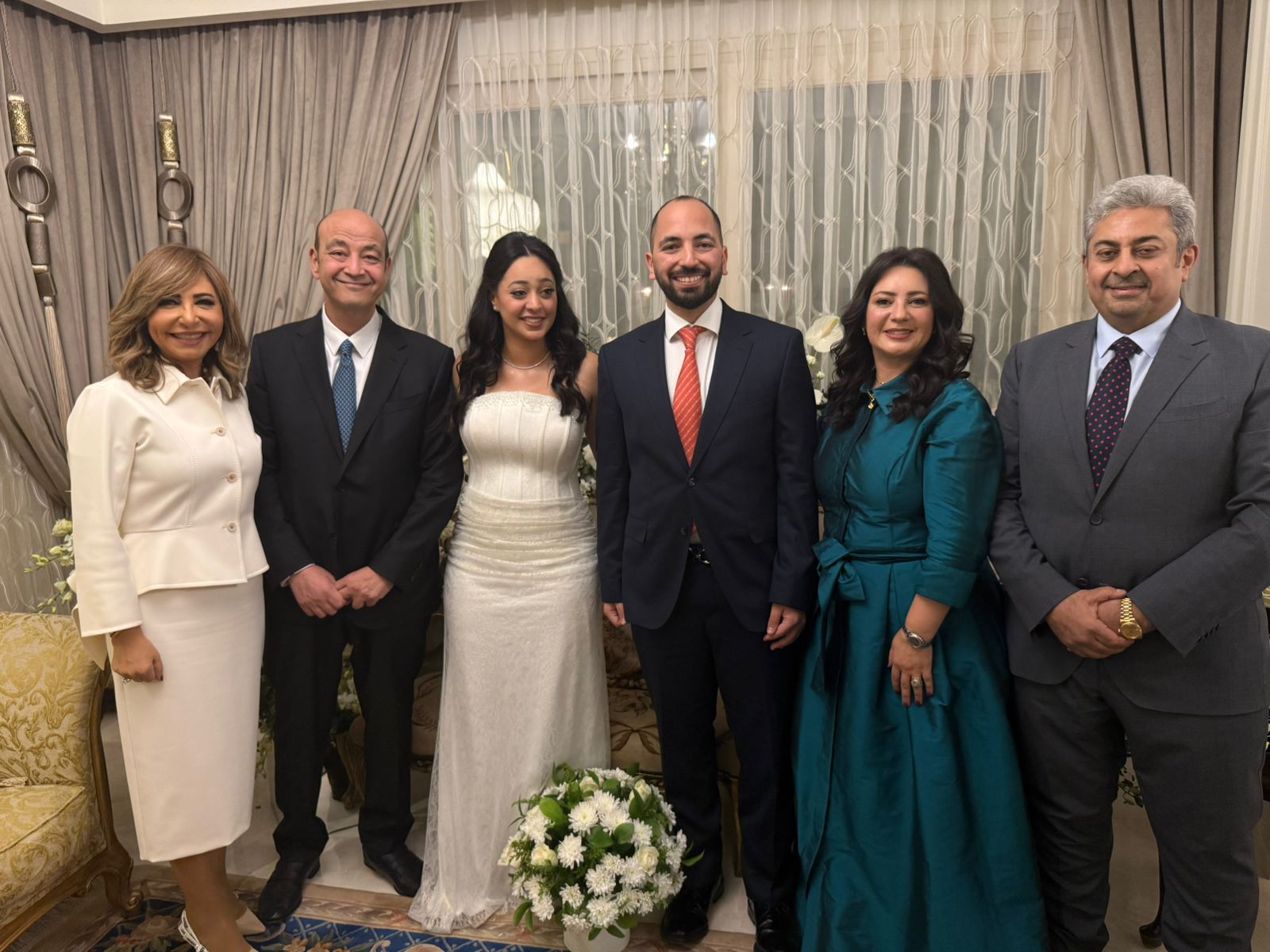 عمرو أديب ولميس الحديدي في قراءة فاتحة نجلهما نور