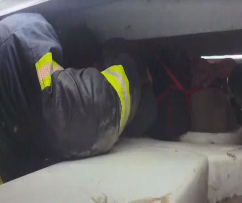 بسلم هيدروليكي، الحماية المدنية تنقذ قطتين عالقتين داخل لافتة إعلانية