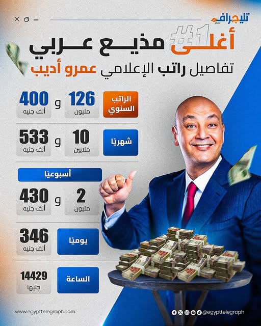 - يُعد عمرو أديب من أبرز وأشهر الإعلاميين في العالم العربي.