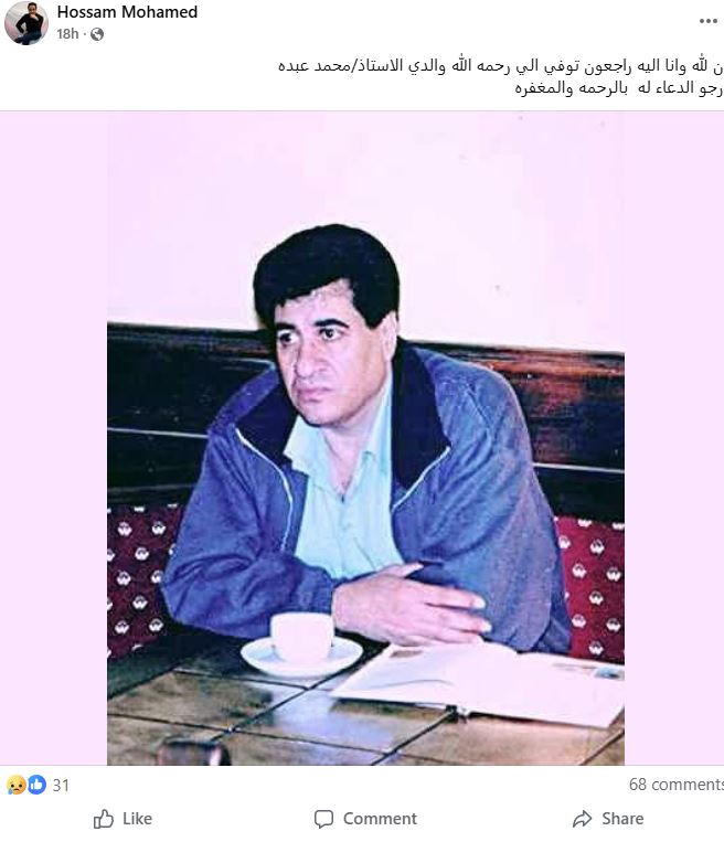 وأعلن حسام محمد، نجل الفنان الراحل، خبر الوفاة عبر حسابه الشخصي على موقع “فيسبوك”، حيث نشر صورة لوالده وكتب: "إنا لله وإنا إليه راجعون، توفي إلى رحمة الله والدي الأستاذ محمد عبده، وأرجو الدعاء له بالرحمة والمغفرة".