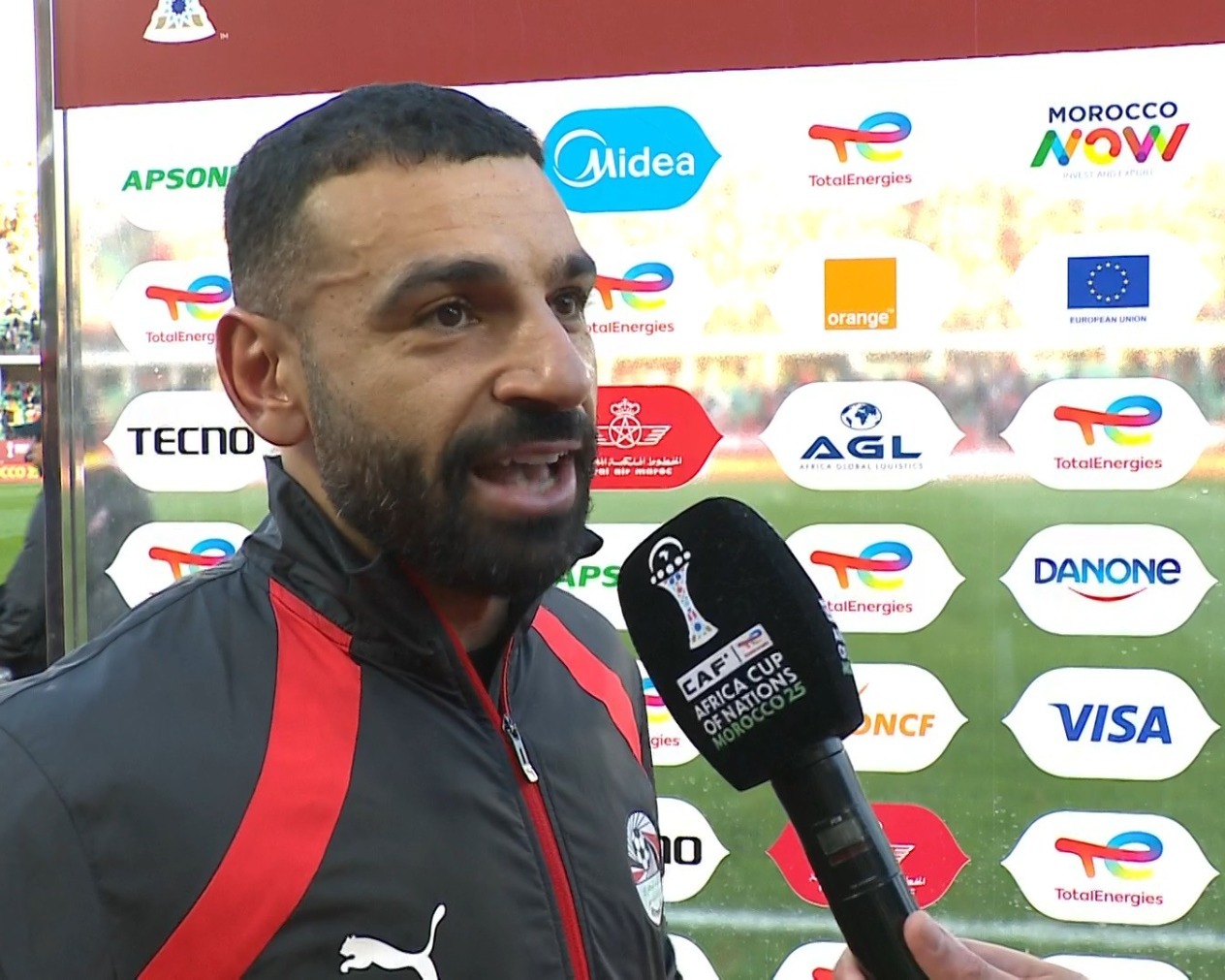 وقال محمد صلاح عبر قناة “بي إن سبورتس”: “الاستاد كان متقفل على آخره، أنا فخور إني بلعب في المغرب ومعانا المشجعين المصريين والمغاربة كمان اللي متواجدين النهارده وشايف أعلامهم ودي حاجة لا تصدق منهم”.