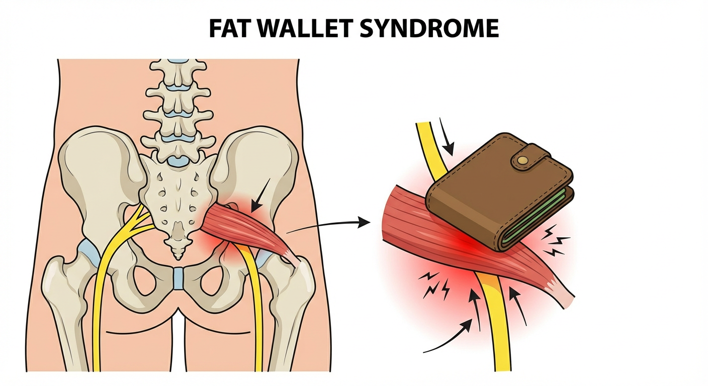 تعرف هذه الحالة طبيا باسم "Fat Wallet Syndrome" أو "Wallet Neuritis"، وهي وصف لالتهاب أو انضغاط في العصب الوركي.