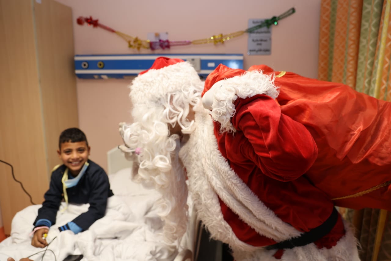 وشهدت أروقة المستشفى وغرف العلاج، زيارة مميزة لـ"بابا نويل"، الذي حرص على زيارة الأطفال المرضى مرتديًا زي سانتا كلوز، حاملا الهدايا والألعاب والورود، وسط أجواء موسيقية مبهجة وأغاني الكريسماس، ما رسم الابتسامة على وجوه الأطفال وذويهم.