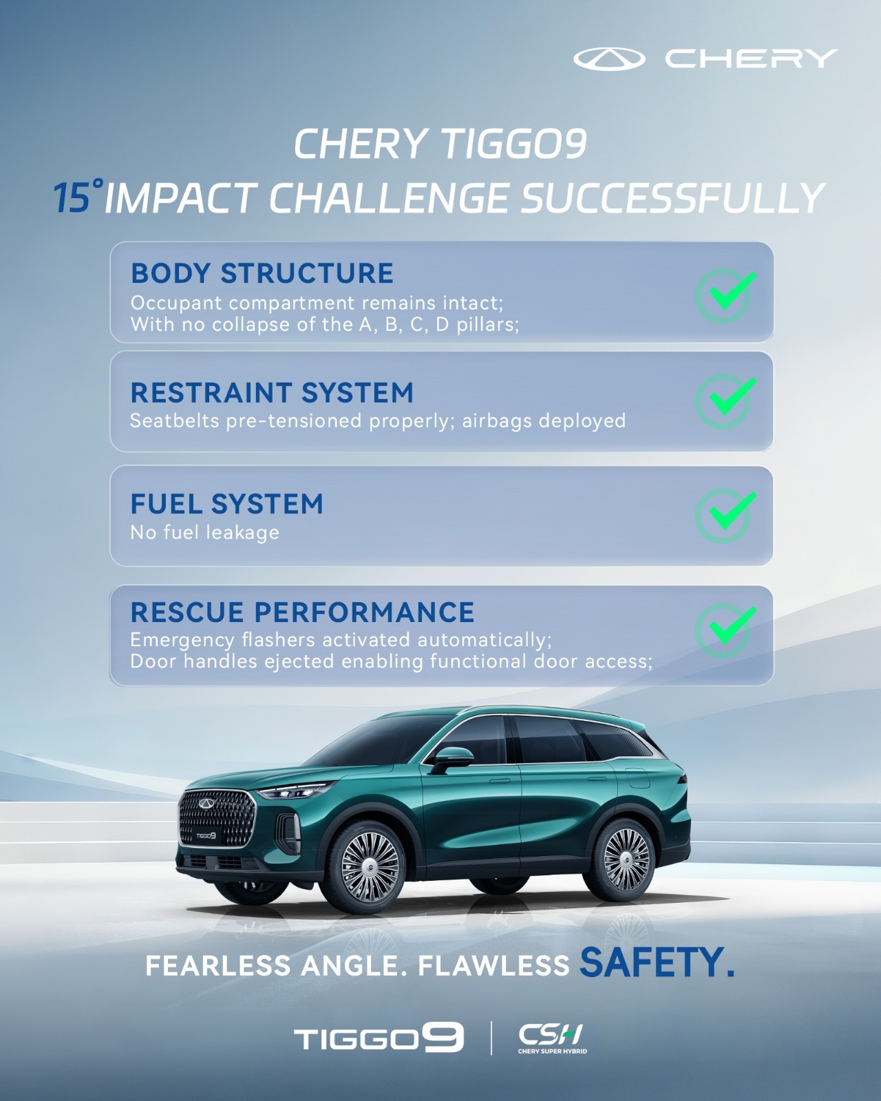 مع ارتفاع توقعات المستخدمين لمعايير سلامة السفر العائلي، أصبح لزامًا على العلامات التجارية أن ترتقي بخطابها من مجرد بيانات إلى أدلة حقيقية، ومن اختبارات معملية إلى أداء واقعي يمكن ملاحظته. ومن خلال تجاوز اختبار التصادم القاسي بانحراف 15 درجة، لا تقدم TIGGO9 إنجازًا تقنيًا فحسب، بل تبرهن على قوة منظومة أمان متكاملة.