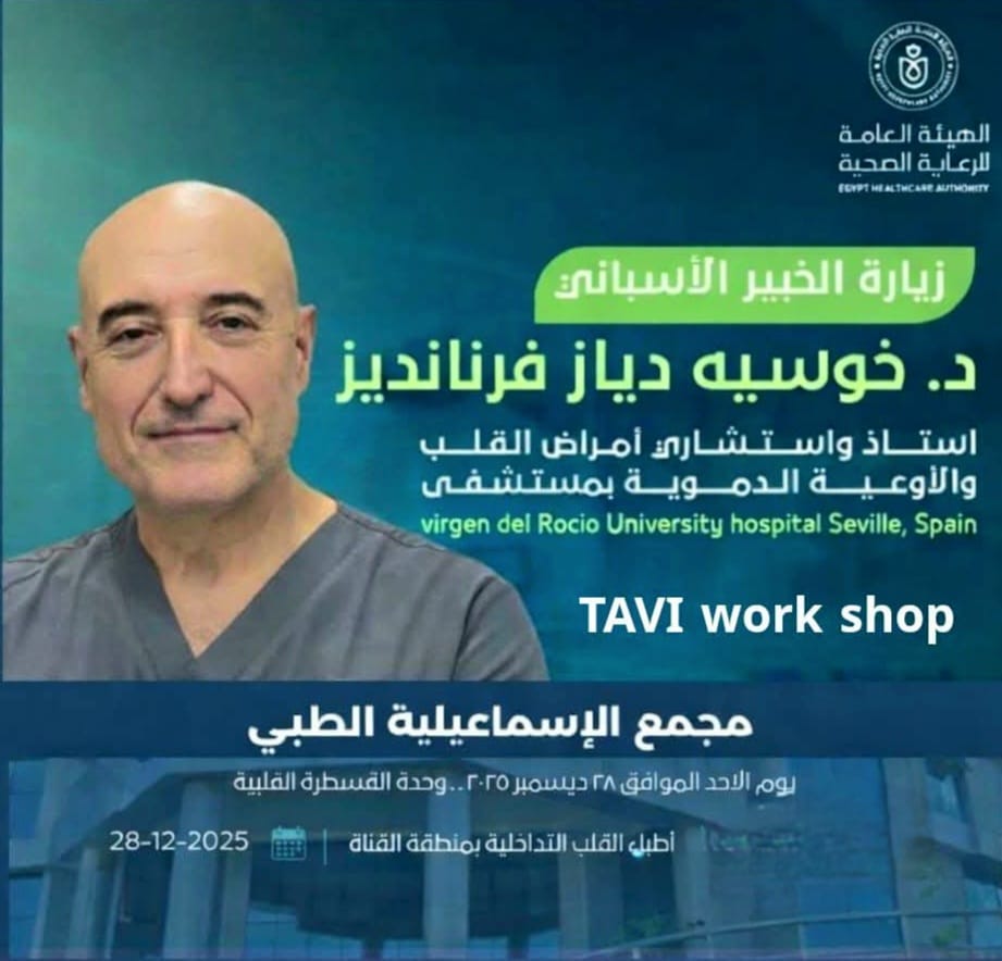 أوضح رئيس مجلس إدارة الهيئة العامة للرعاية الصحية والمشرف العام على مشروع التأمين الصحي الشامل الدكتور أحمد السبكي، أن برنامج الاستضافة يتضمن ورشة عمل مكثفة بعنوان: (TAVI: From Basic To Advanced) لتغيير الصمام الأورطي بالقسطرة، حيث يشمل البرنامج محاضرات نظرية متعمقة وتطبيق عملي مباشر لإجراء عمليات TAVI للحالات المستعصية، تحت إشراف الخبير الإسباني، بمشاركة نخبة من أطباء القلب التداخلي بمنطقة القناة، بهدف تعزيز مهارات الكوادر الطبية المصرية وتطوير مستوى الرعاية المتقدمة.