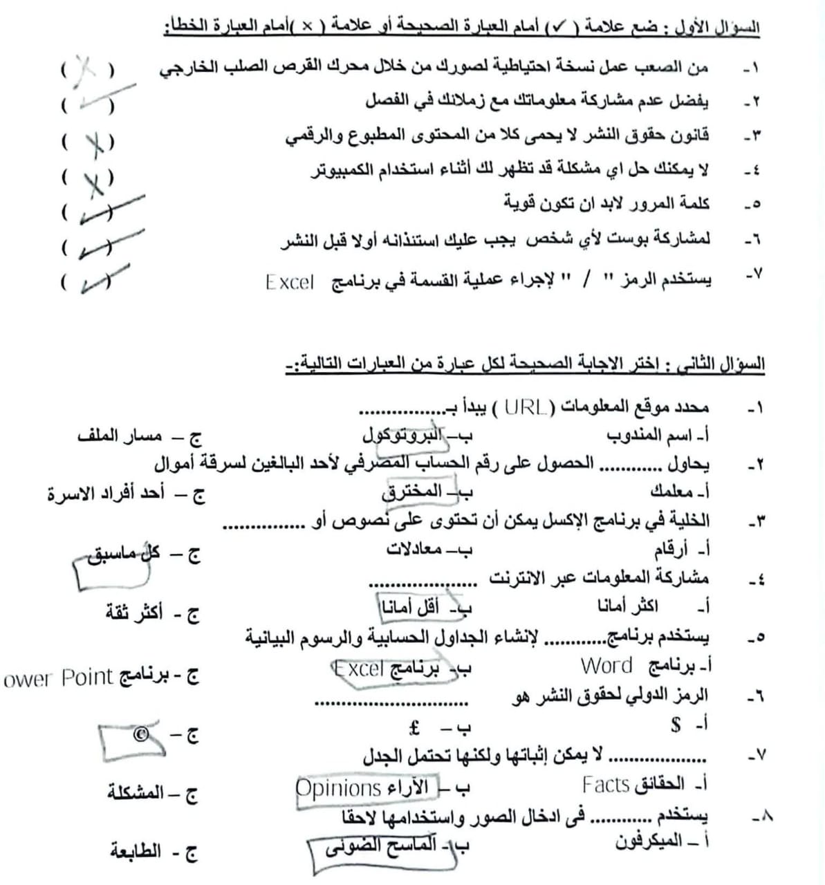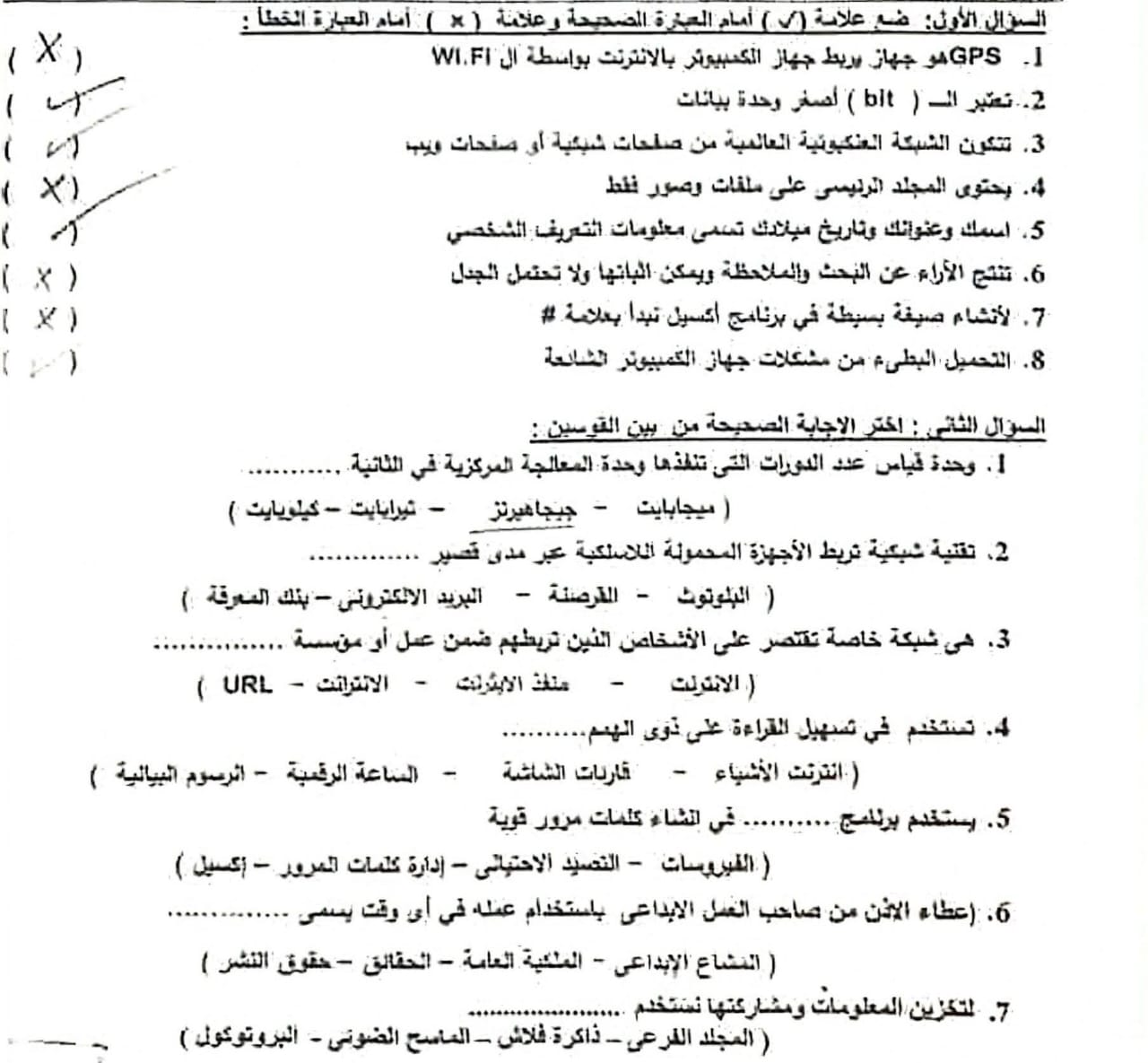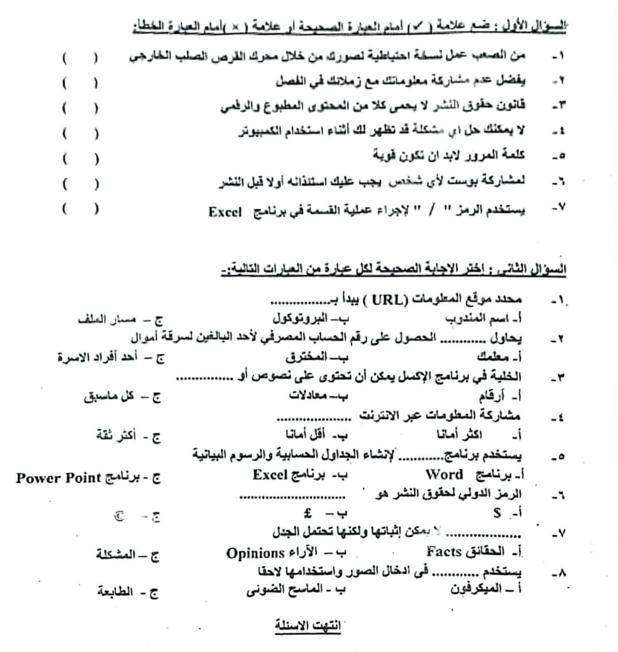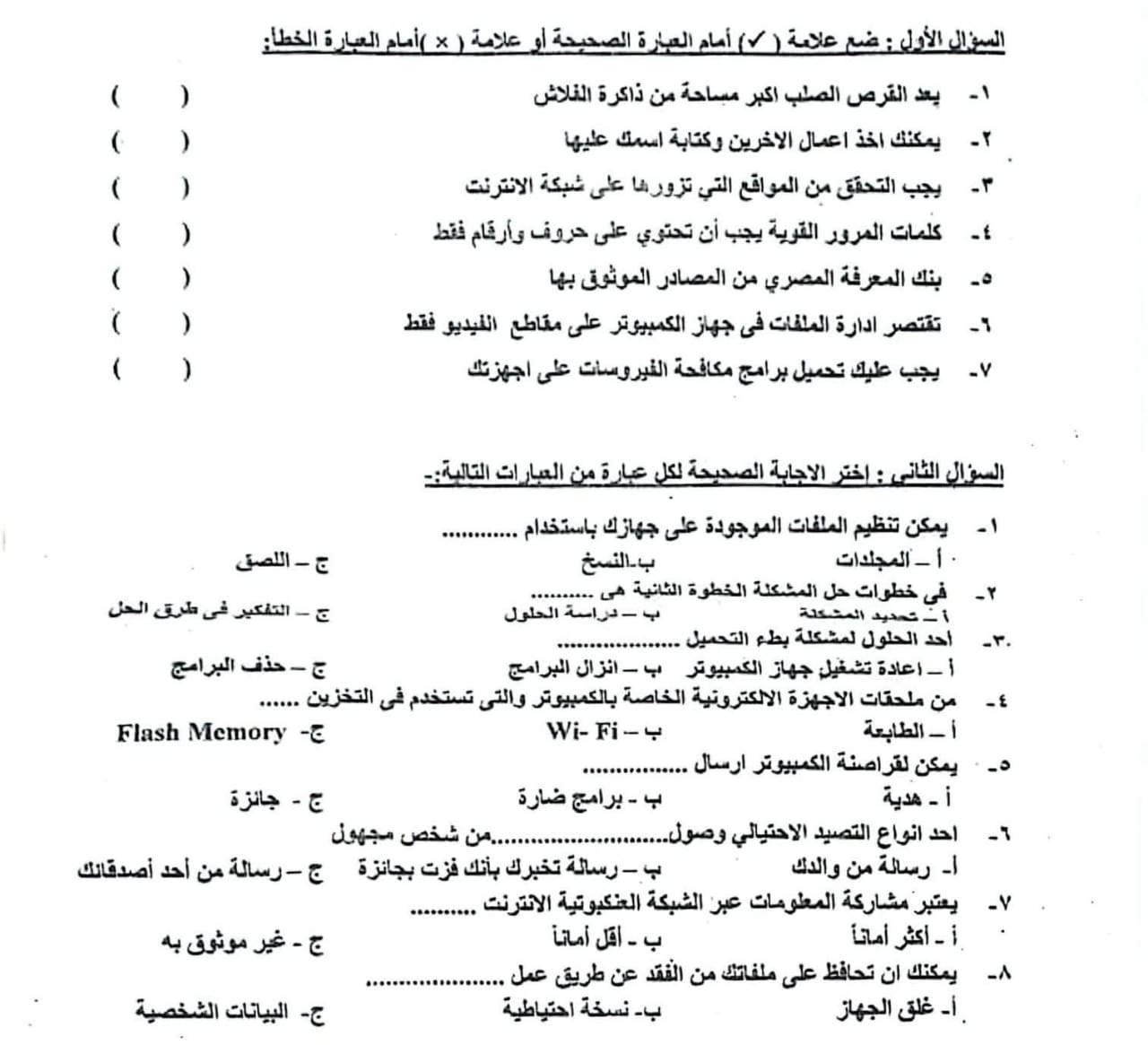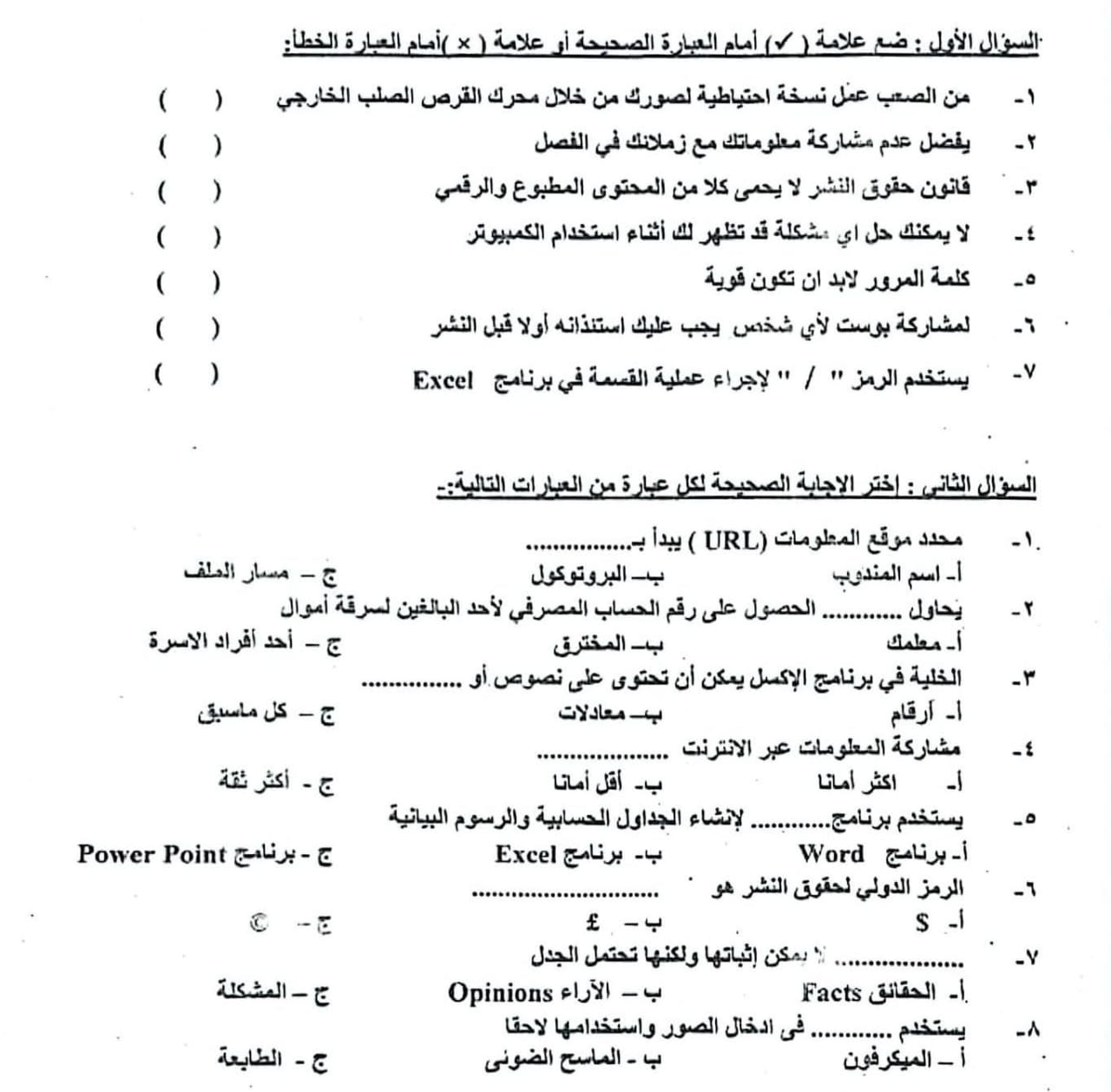 ونستعرض نماذج امتحان مادة تكنولوجيا المعلومات في مختلف المحافظات للصف الخامس الابتدائي خلال الصور التالية: