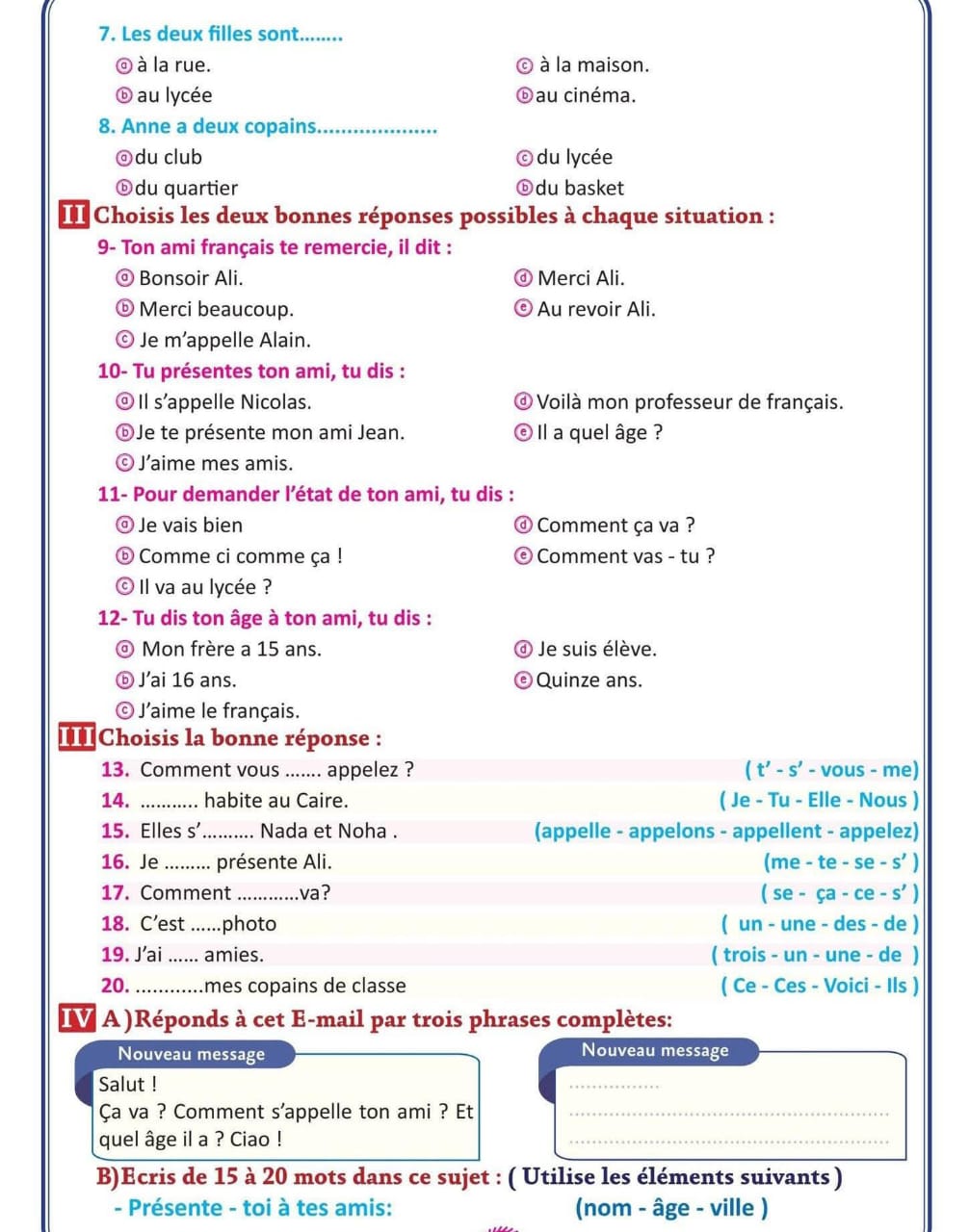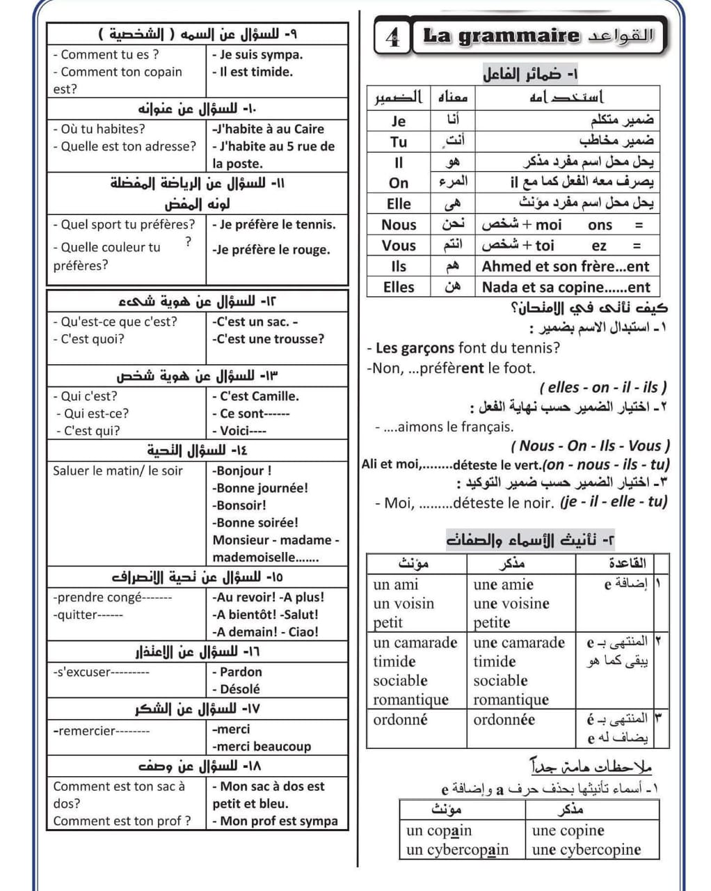 مراجعة فرنساوي أولى ثانوي ترم أول 2025-2026