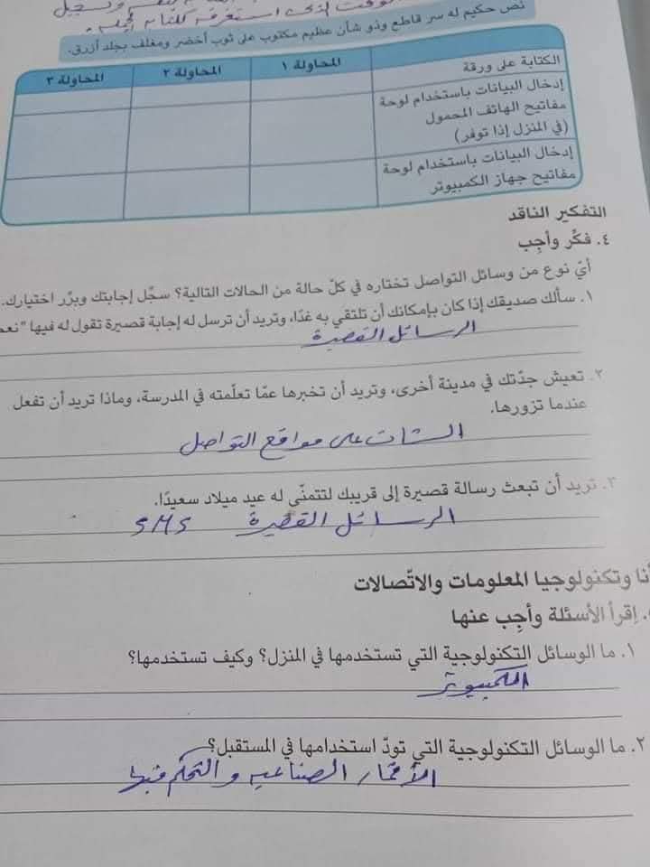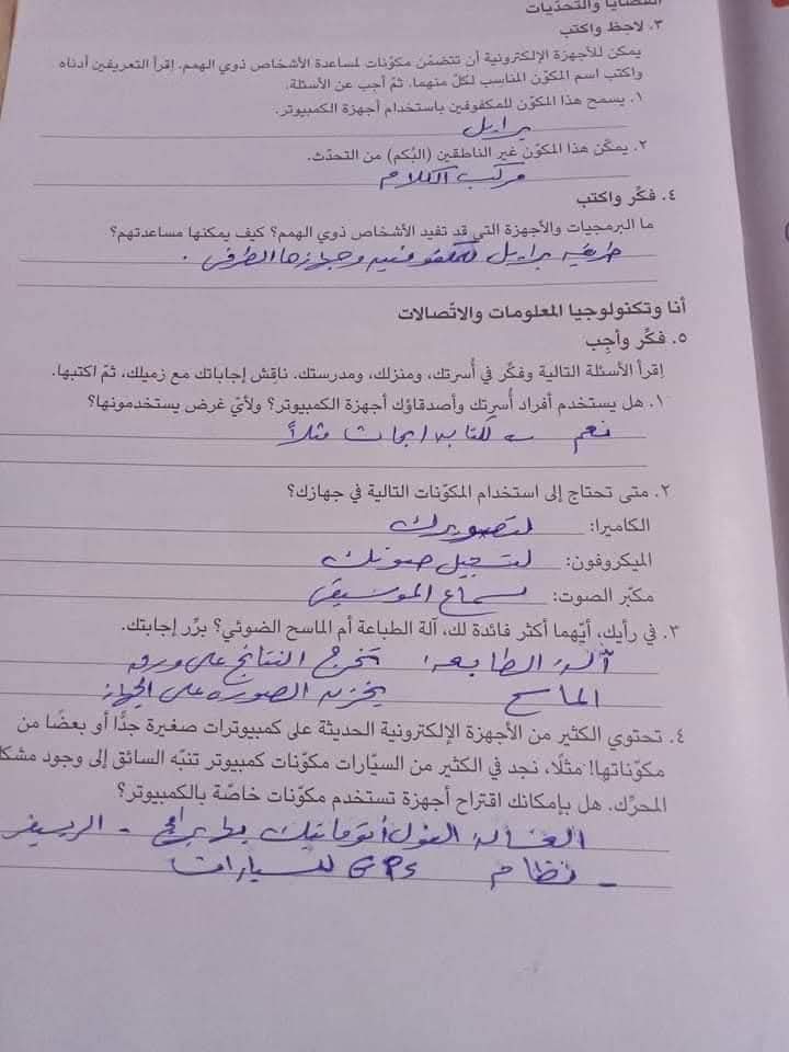 مراجعة تكنولوجيا المعلومات والاتصالات للصف الرابع الابتدائي، أهم الأسئلة