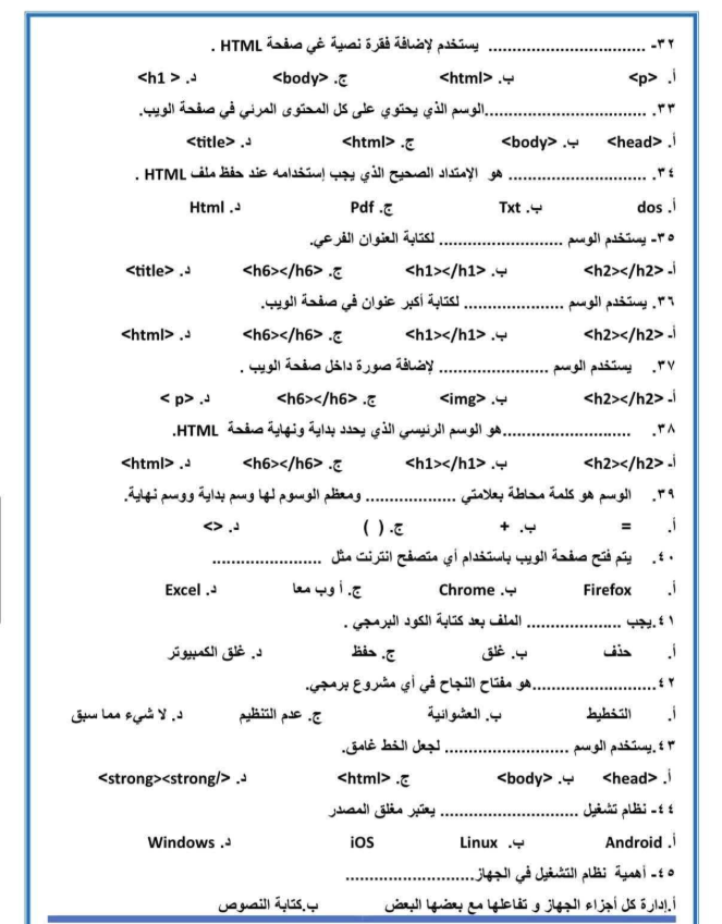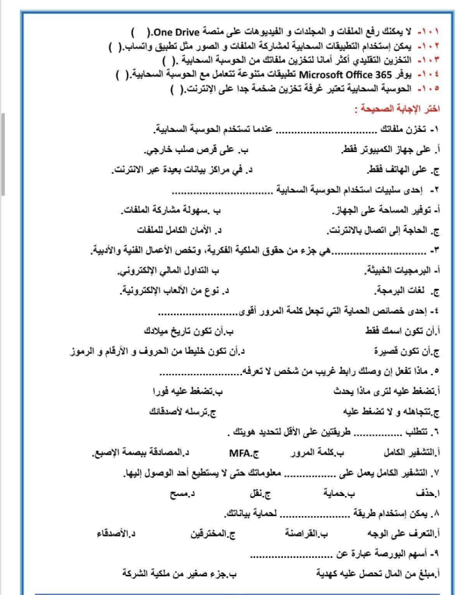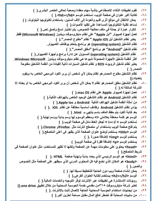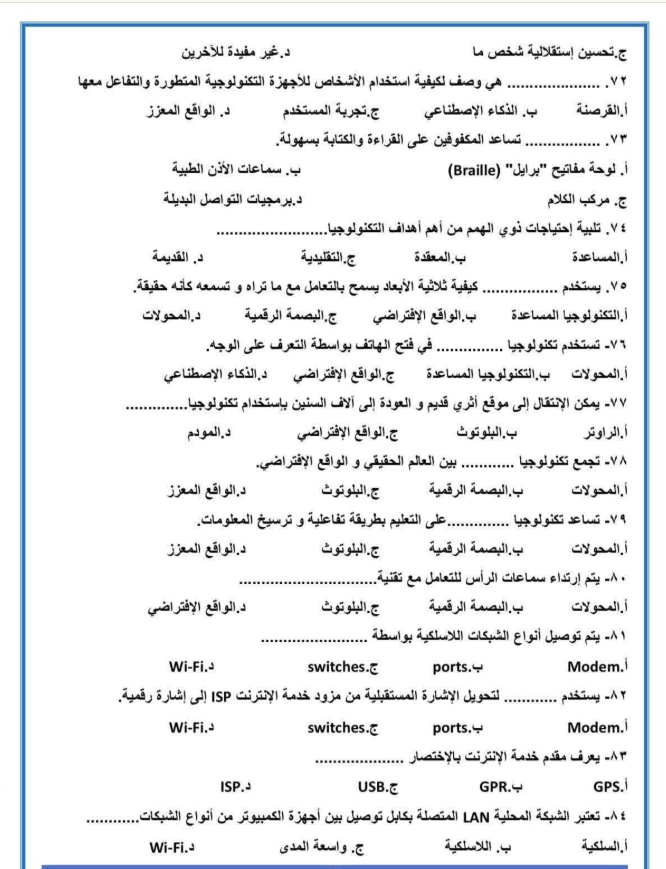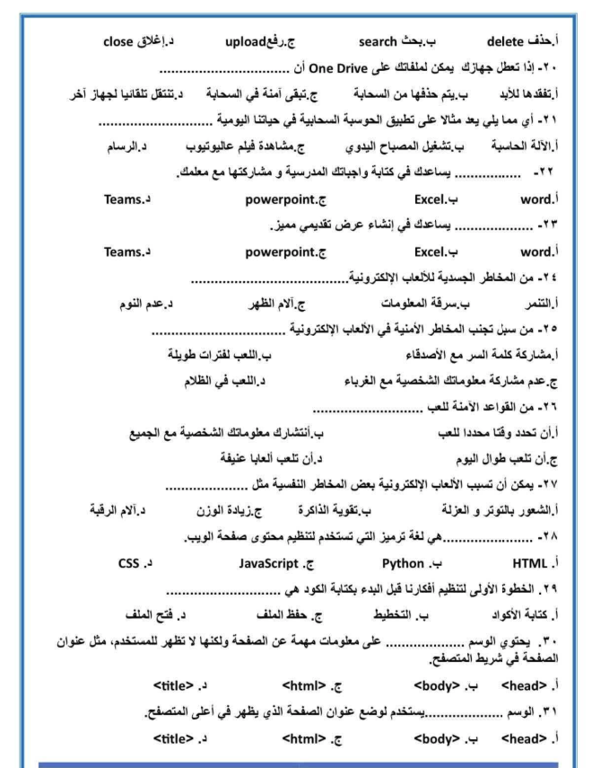 مراجعة تكنولوجيا الصف السادس الابتدائي 2025-2026
