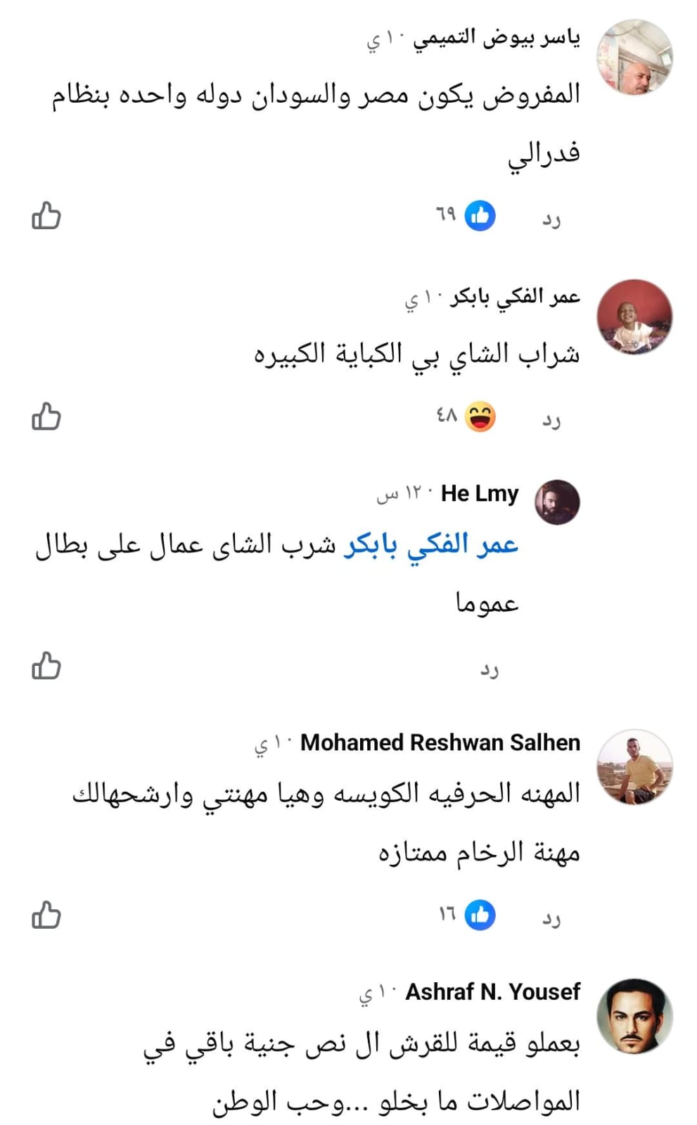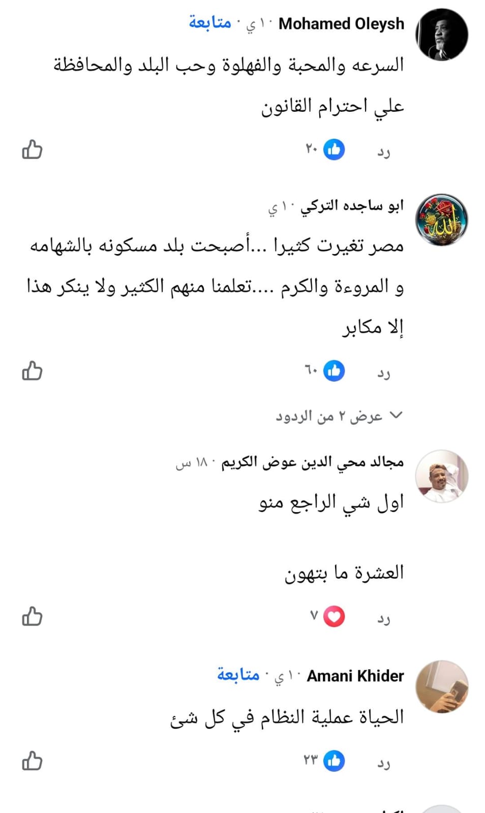 ومن بين التعليقات الأخرى، كتب آواب عثمان: "السرعة والجدية في العمل واحترام قوانين العمل، القروش لها قيمة"، واستشهد بمثل مصري: "القرش الأبيض ينفع في اليوم الأسود".