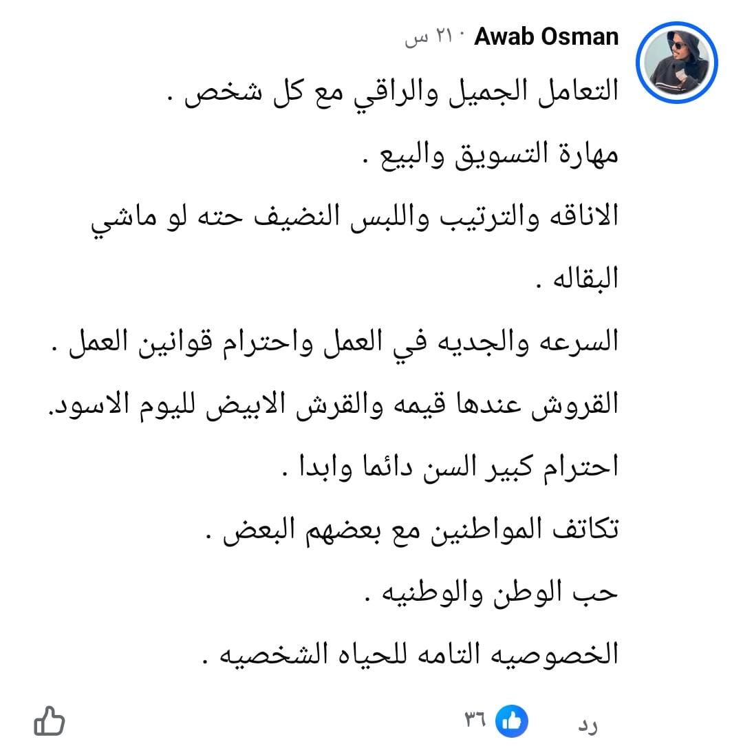 فيما علق آخرون: "العشرة ما بتهون، الحياة عملية والنظام في كل شيء، الصبر على الشدائد مهما بلغت شدتها، الإنسان يستفيد من وقته ويبقى عملي وبعيد عن المجاملات".