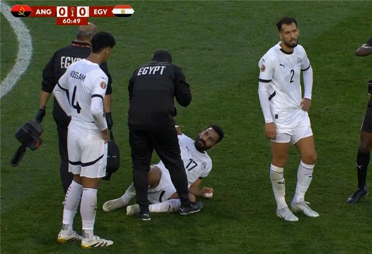 إصابة خطيرة لـ نجم منتخب مصر، ويغادر مباراة أنجولا إلى المستشفى
