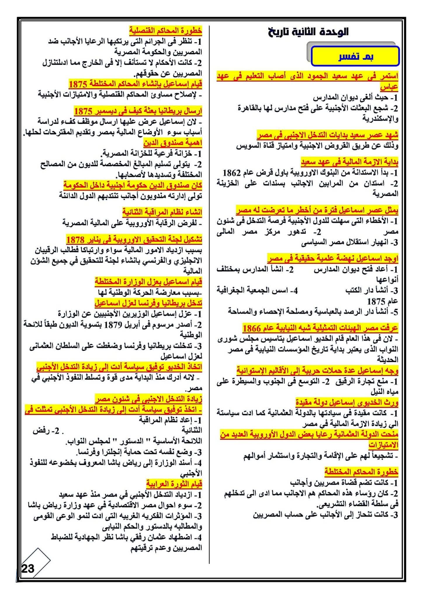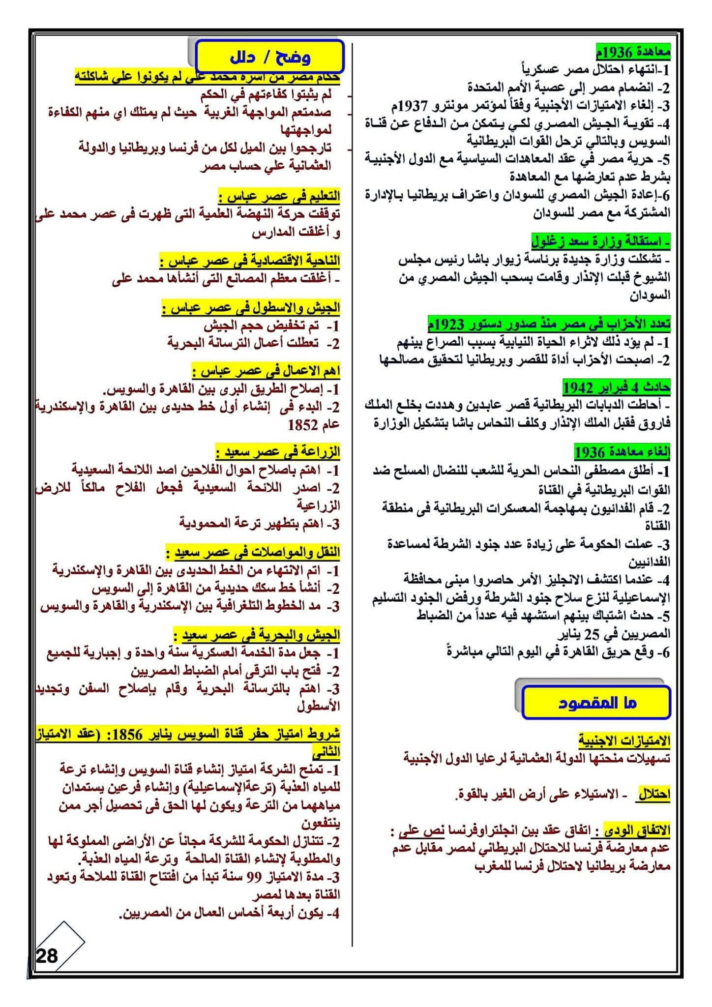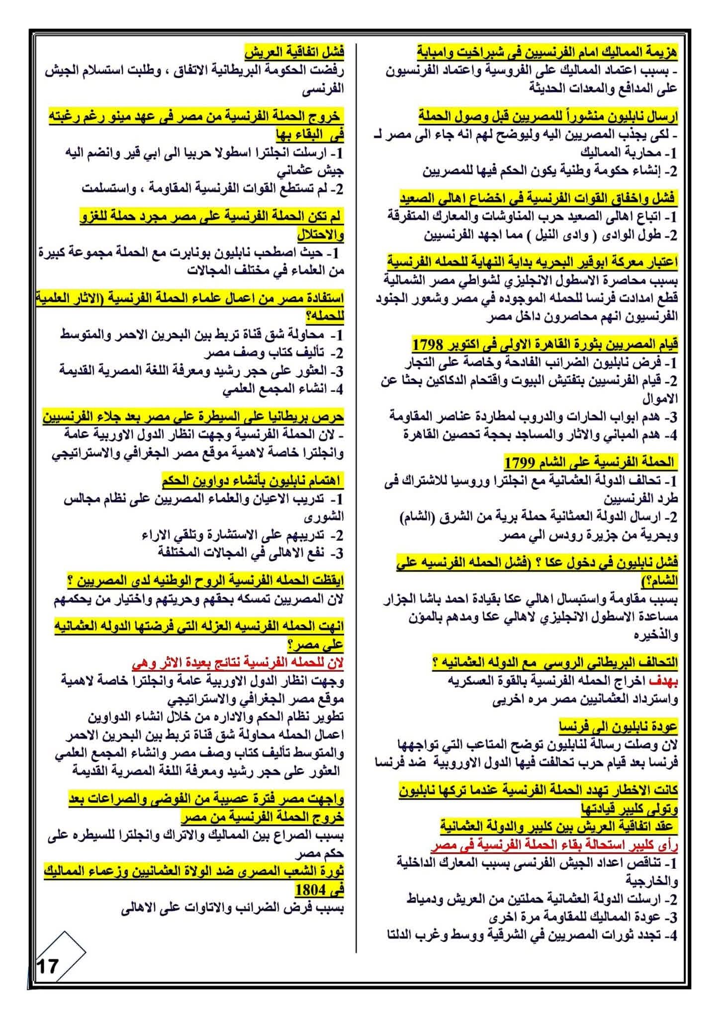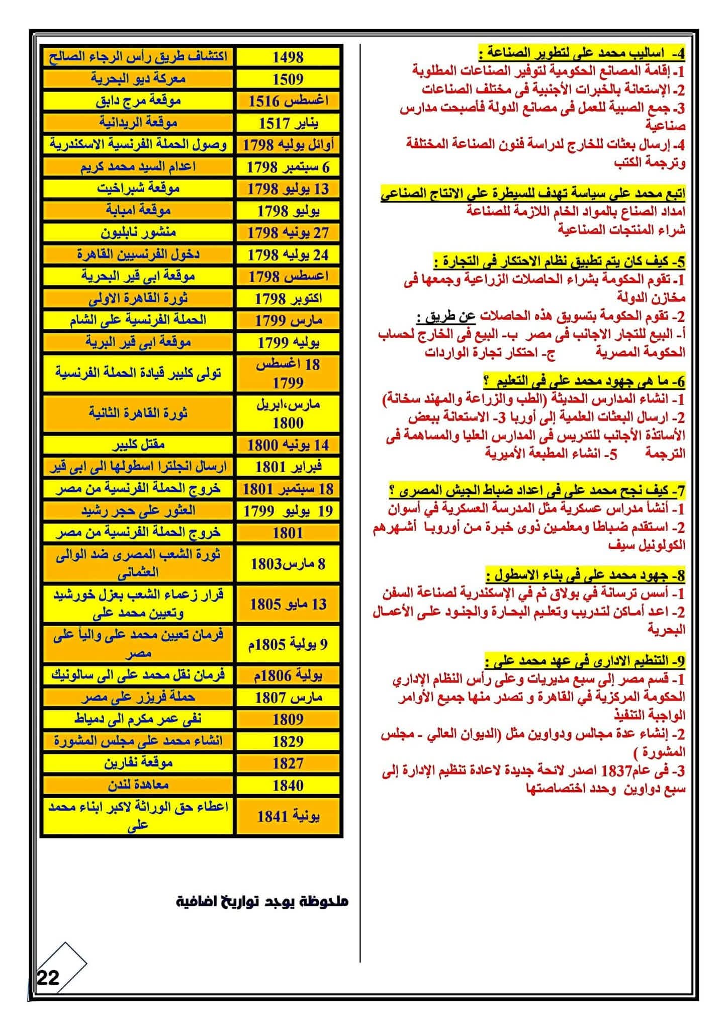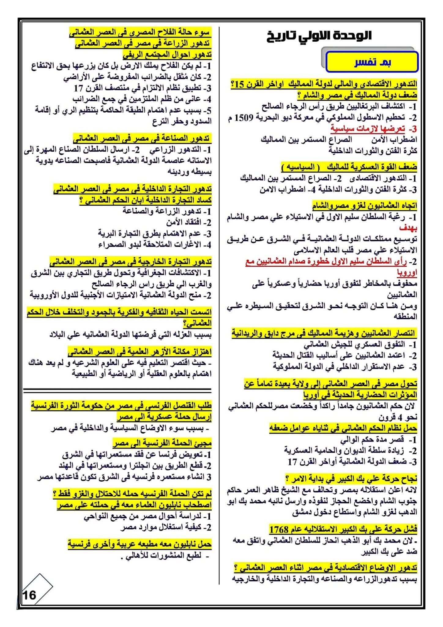ومن مراجعة التاريخ للصف الثالث الإعدادي الترم الأول: