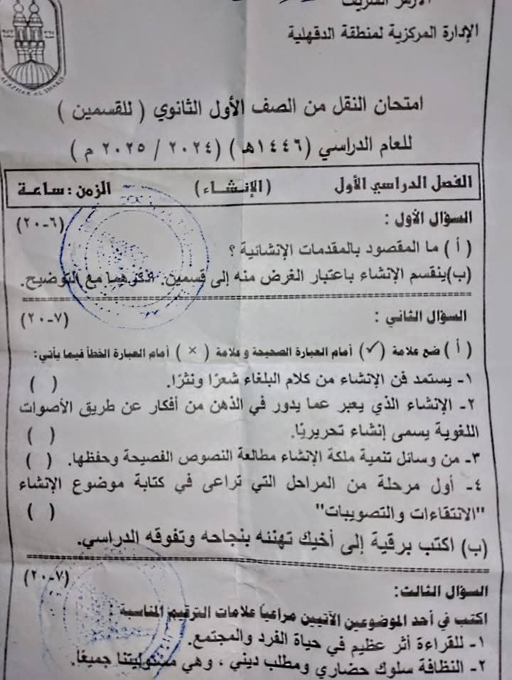 بدء طلاب صفوف النقل الأزهري، امتحانات الفصل الدراسي الأول للعام الدراسي 2025-2026، ما يجعل الطلاب للاهتمام بمراجعات الأسئلة لجميع المواد ومن بينها، نماذج امتحان الإنشاء للصف الأول الثانوي الأزهري الترم الأول.