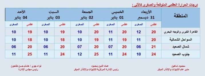 درجات الحرارة غدًا الأربعاء 31 ديسمبر