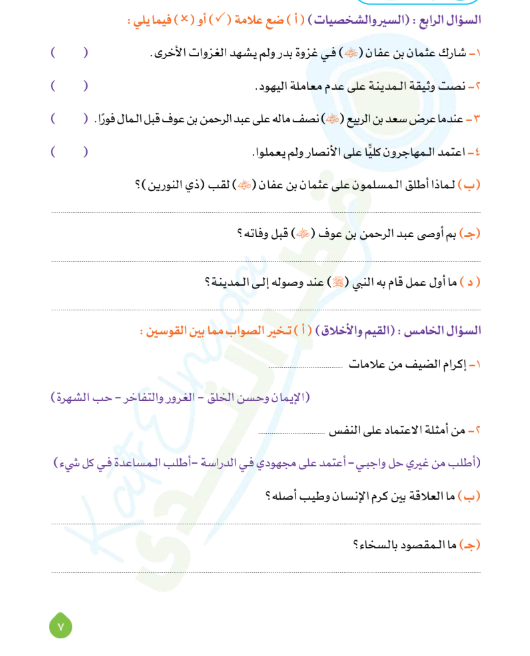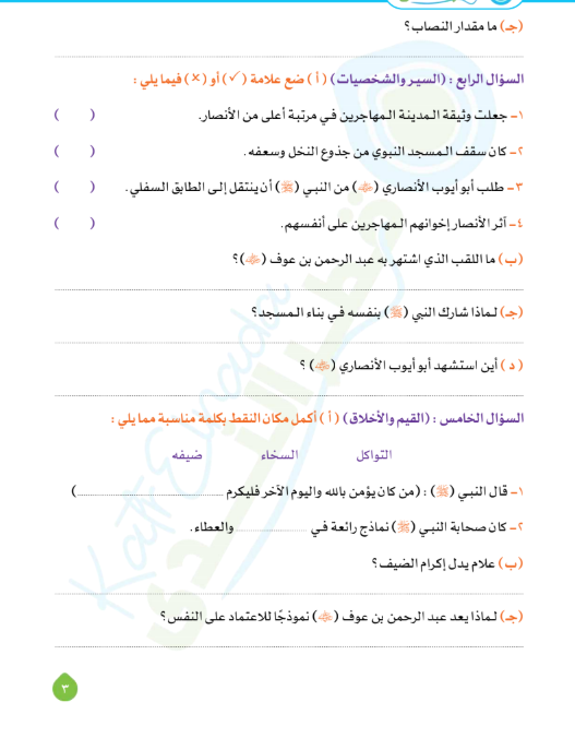 - الوحدة الأولى: الدين والكرم.