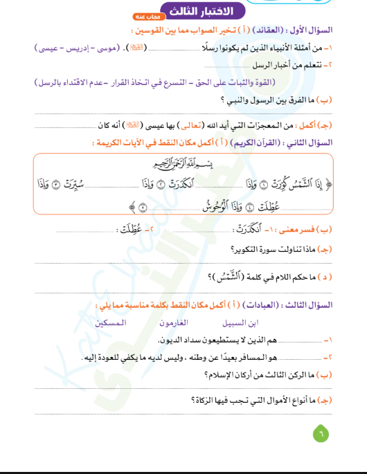 مراجعة دين للصف السادس الابتدائي الترم الأول 2026