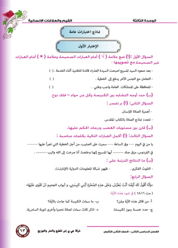 ونستعرض خلال السطور التالية صور مراجعة دين مسيحي تانية ثانوي ترم أول 2025-2026: