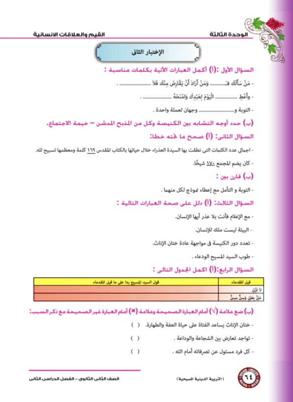 مراجعة دين مسيحي تانية ثانوي ترم أول 2025-2026