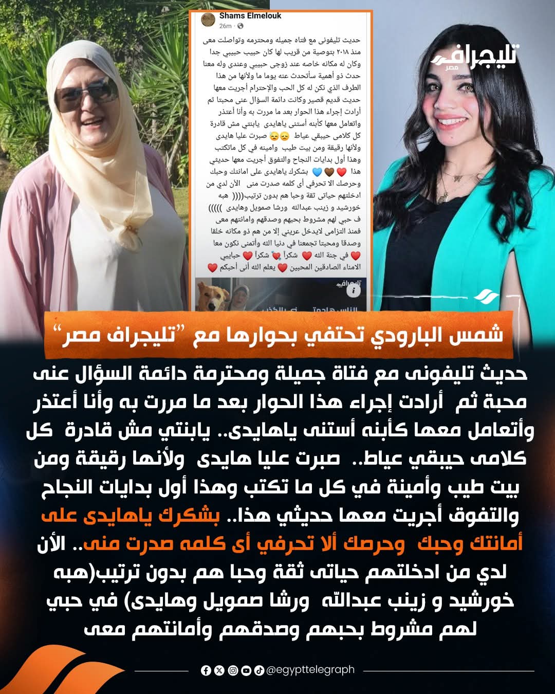 ولأننا ننعم بعلاقة قائمة علي الحب والثقة المتبادلة منذ سنوات، سمحت لنا بهذا الحوار الحصري والجريء التي خرجت فيه عن صمتها لأول مرة، وأزاحت الستار بعد غياب سنوات طويلة وبصوت حزين يملؤه الشوق والبكاء طلت شمس البارودي علي الملاييين من محبيها عبر “تليجراف مصر”، وأبحرنا معها إلى عوالم مختلفة، فإلى نص الحوار.