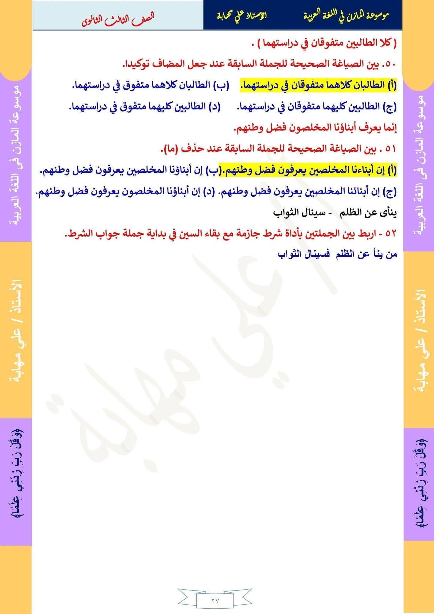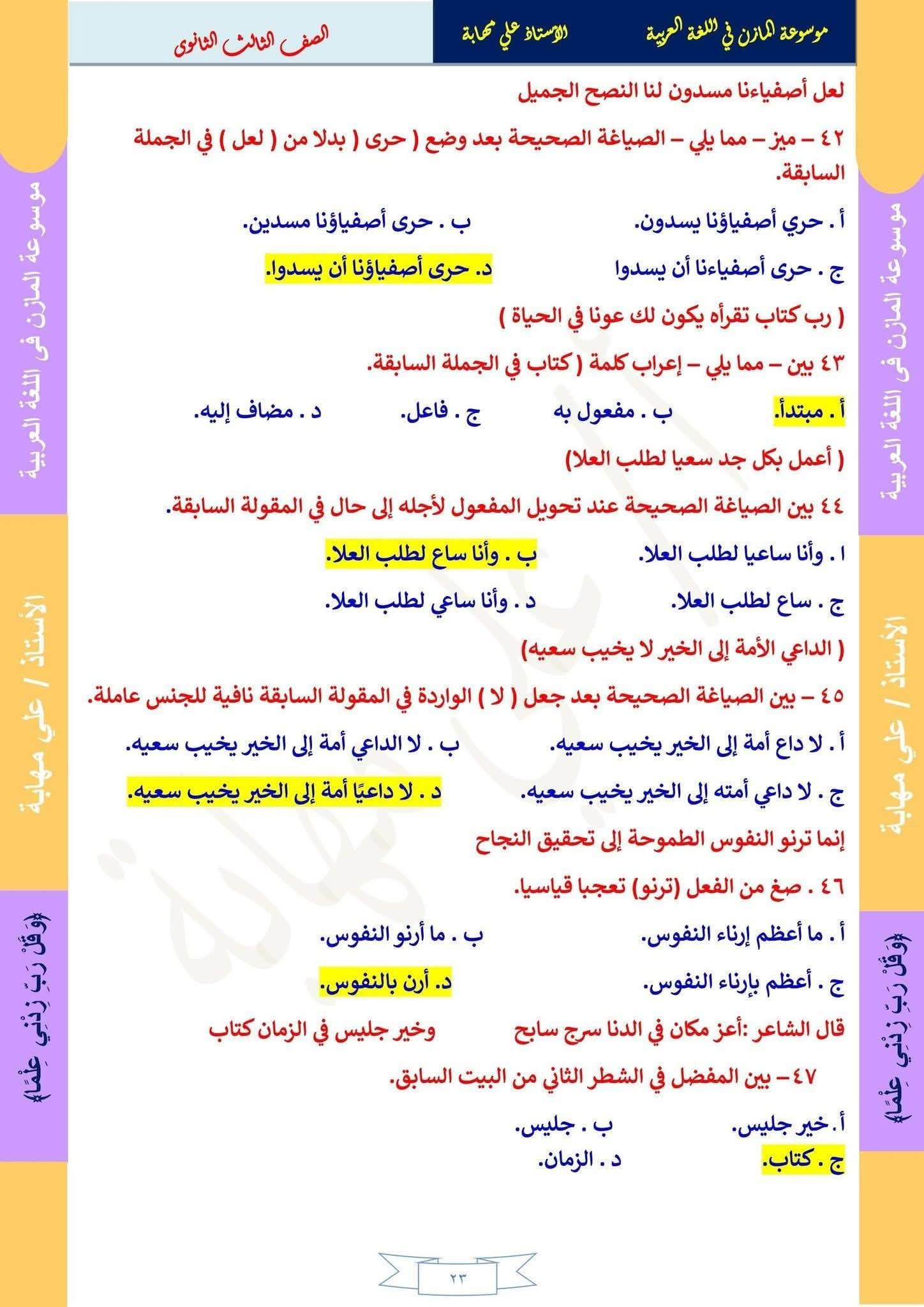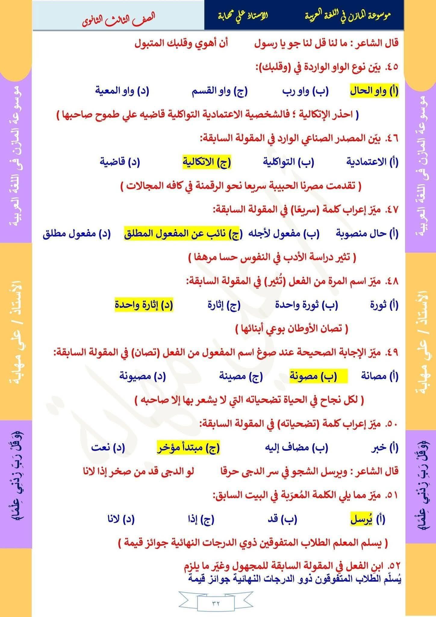 وتعد مادة اللغة العربية من أهم المواد لطلاب الصف الثالث الثانوي العام حيث يحصد طلاب الثانوية العامة الدرجات من خلالها وذلك لأنها تتضمن عدد مرتفع من الدرجات.