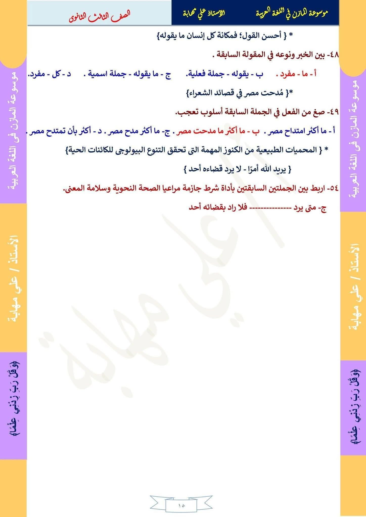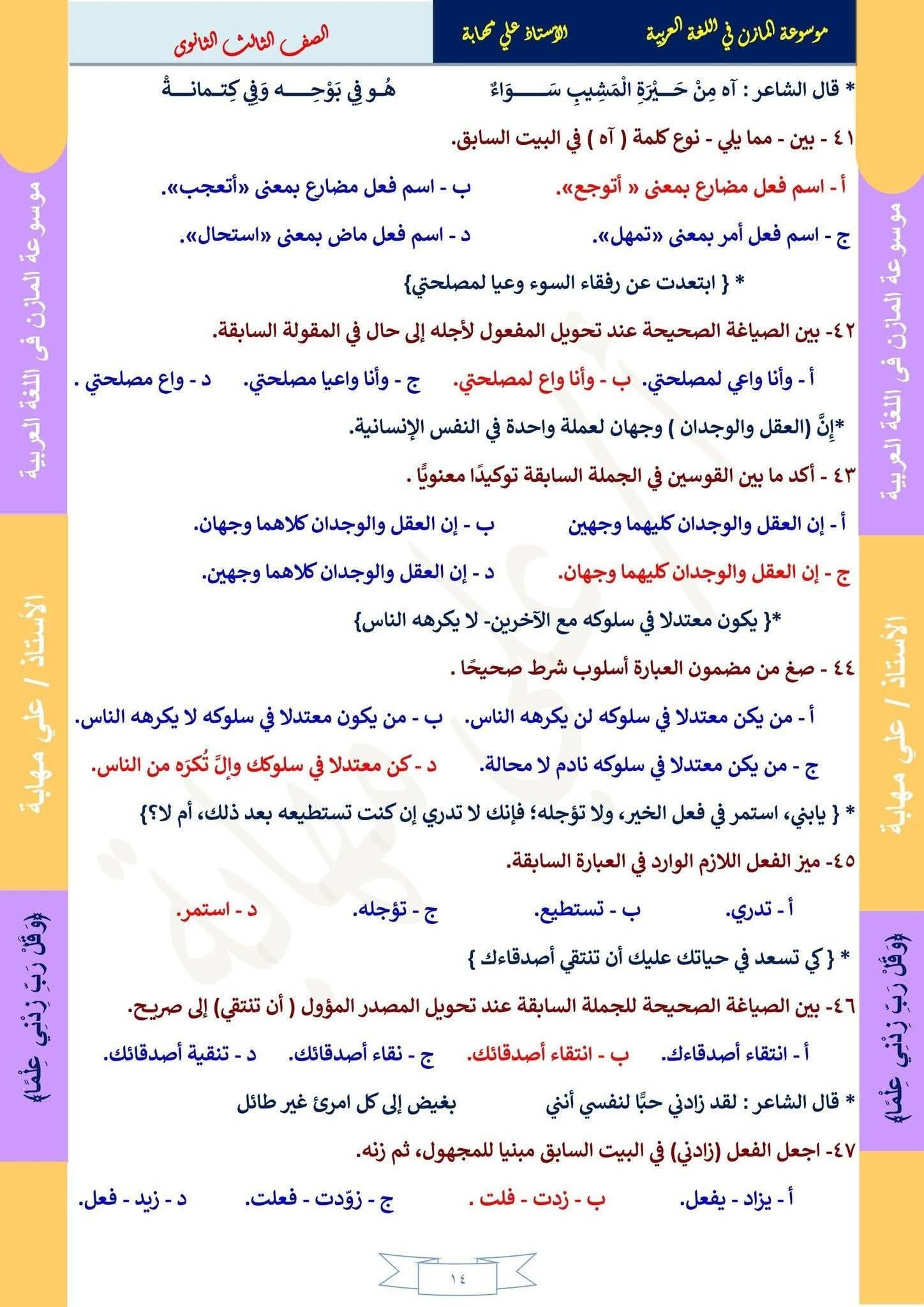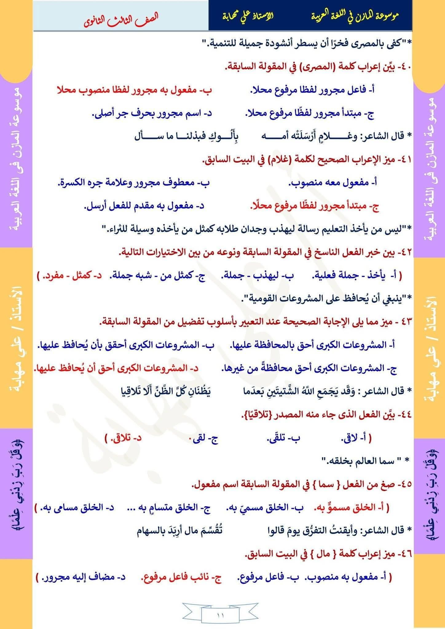 وجاءت النماذج الاسترشادية للصف الثالث الثانوي اللغة العربية كالتالي: