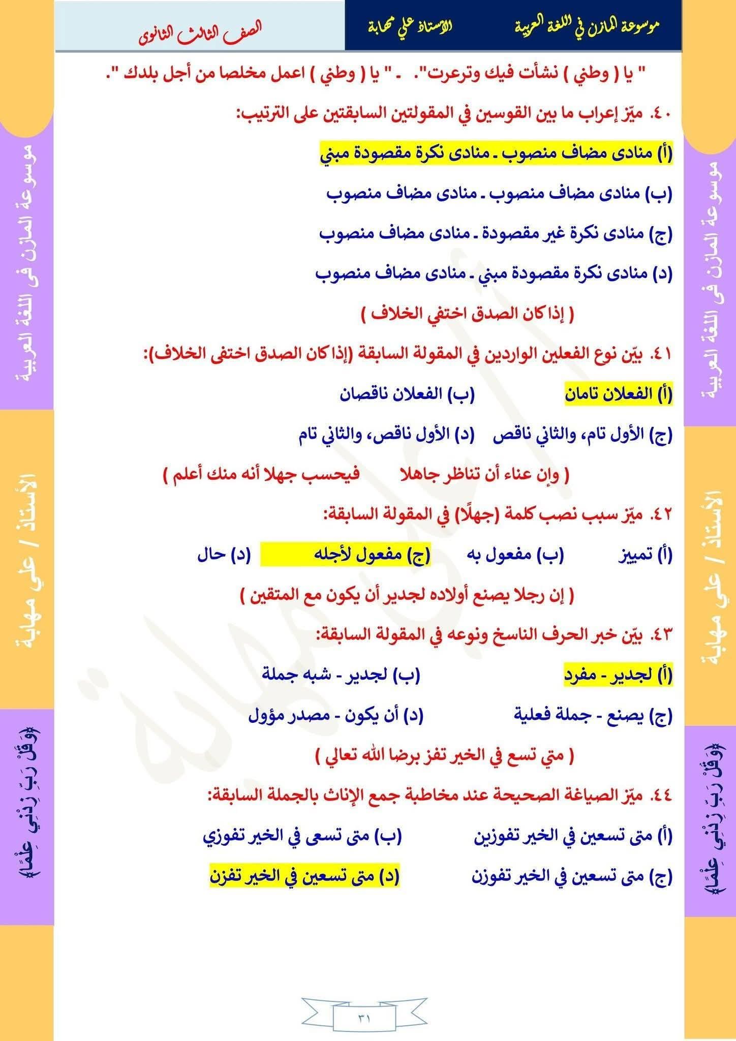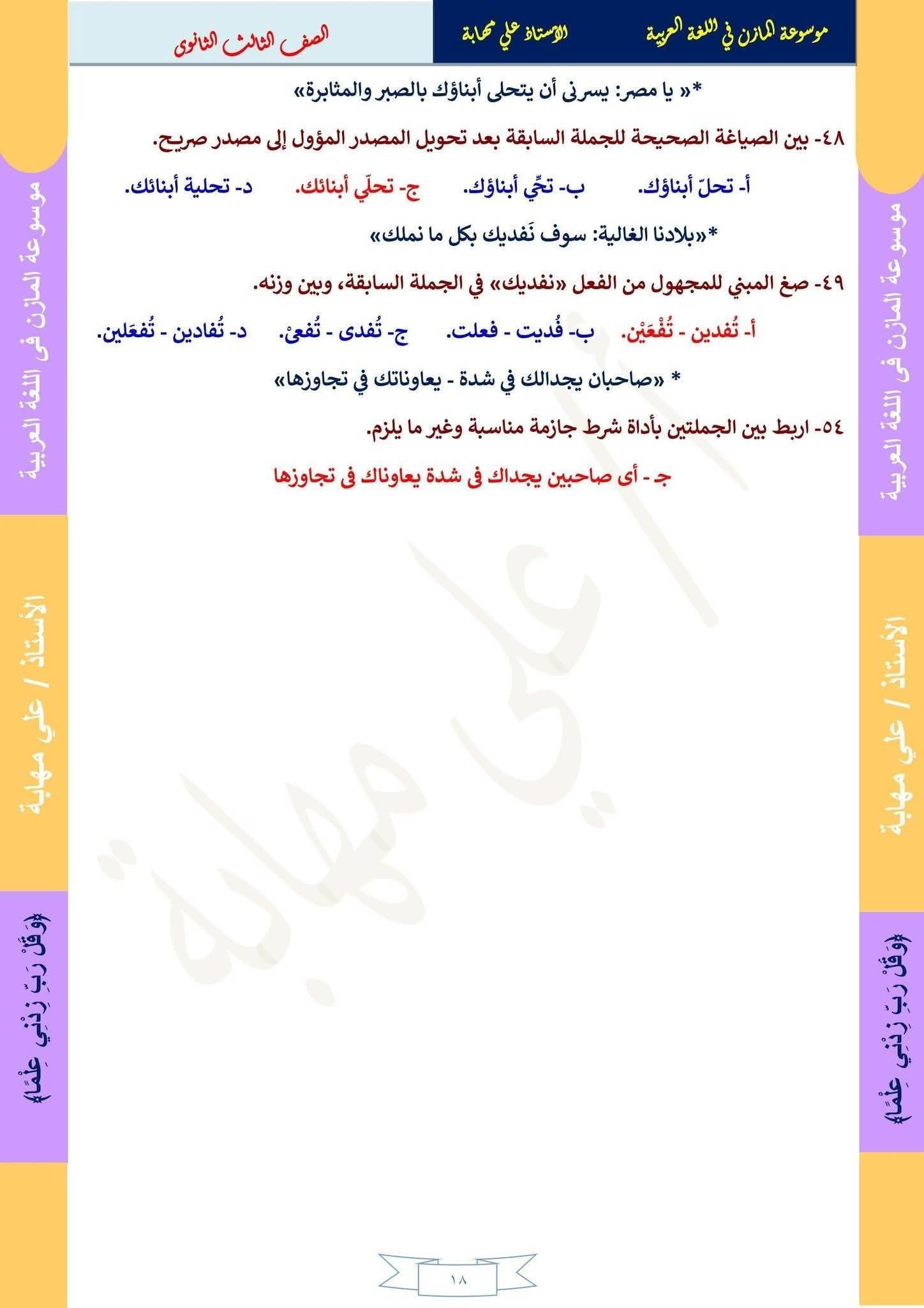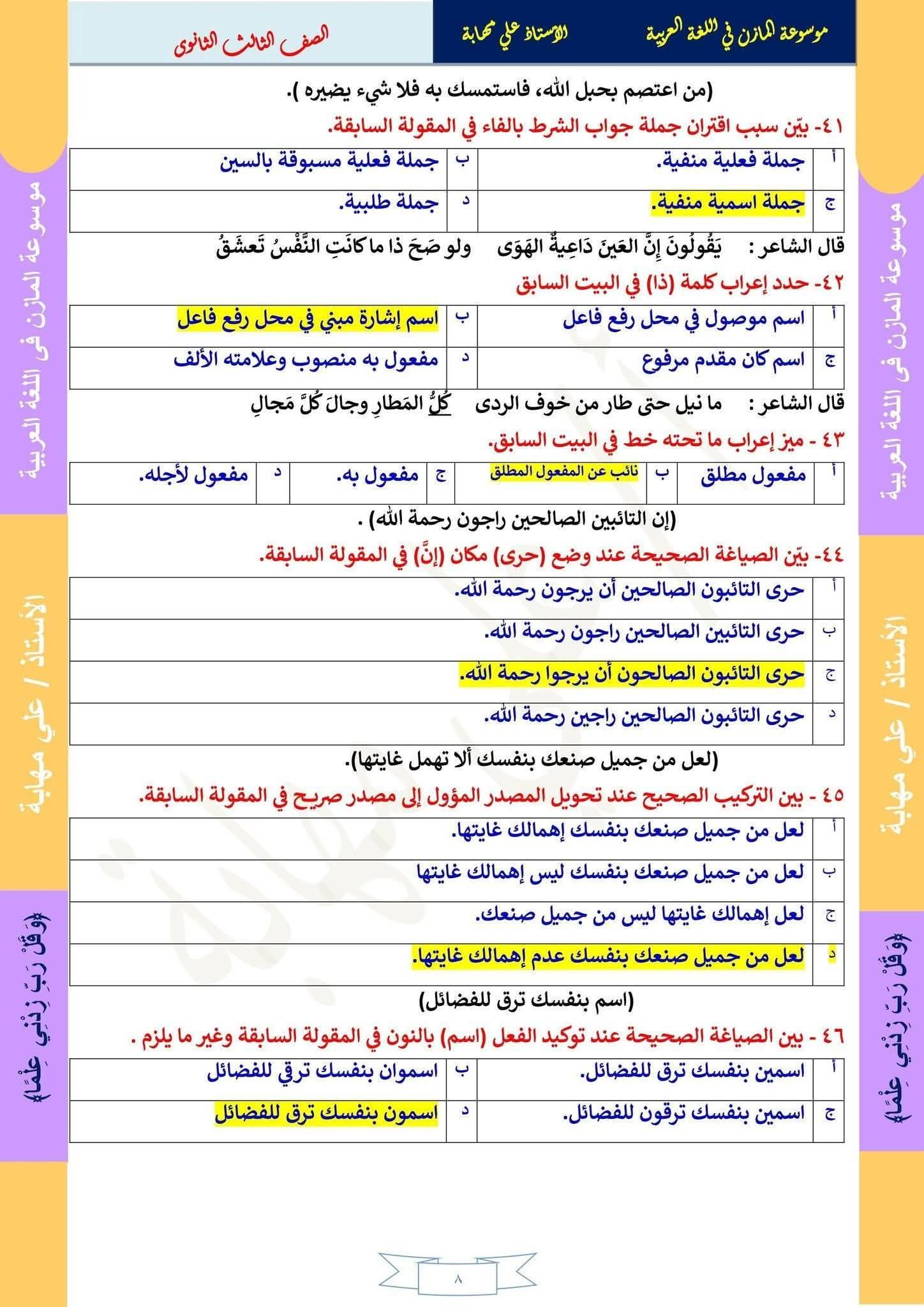 وجاءت النماذج الاسترشادية للصف الثالث الثانوي اللغة العربية كالتالي: