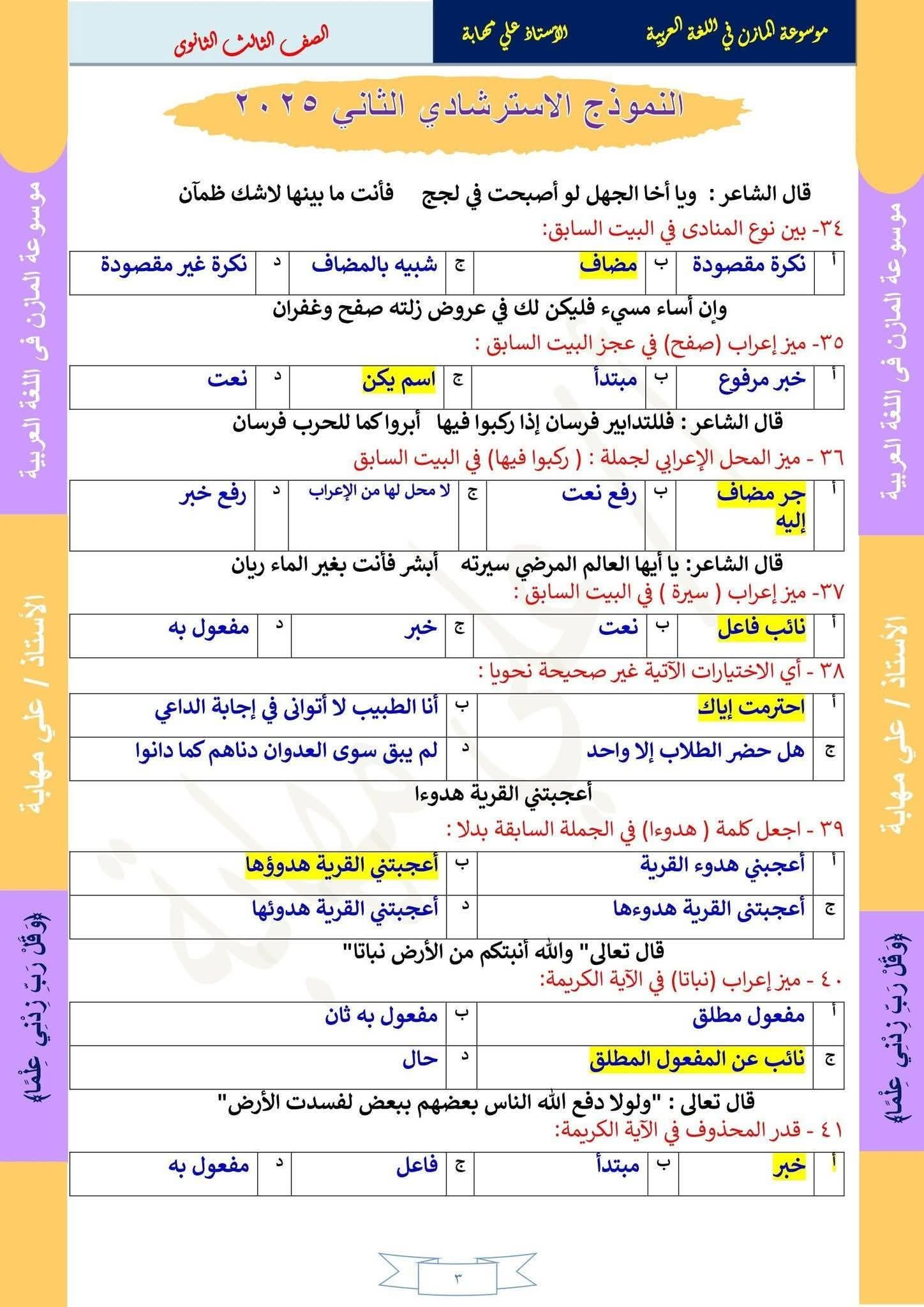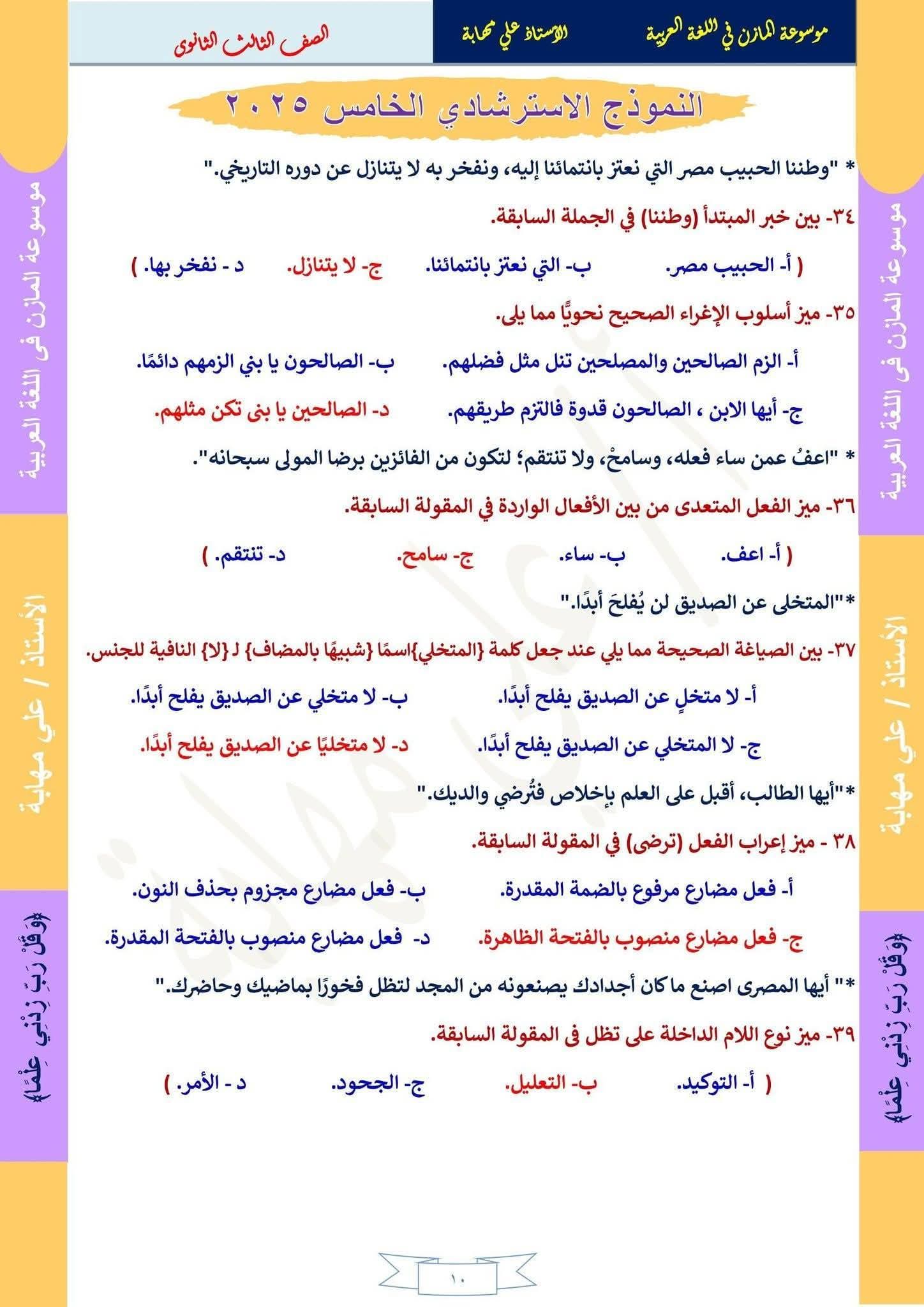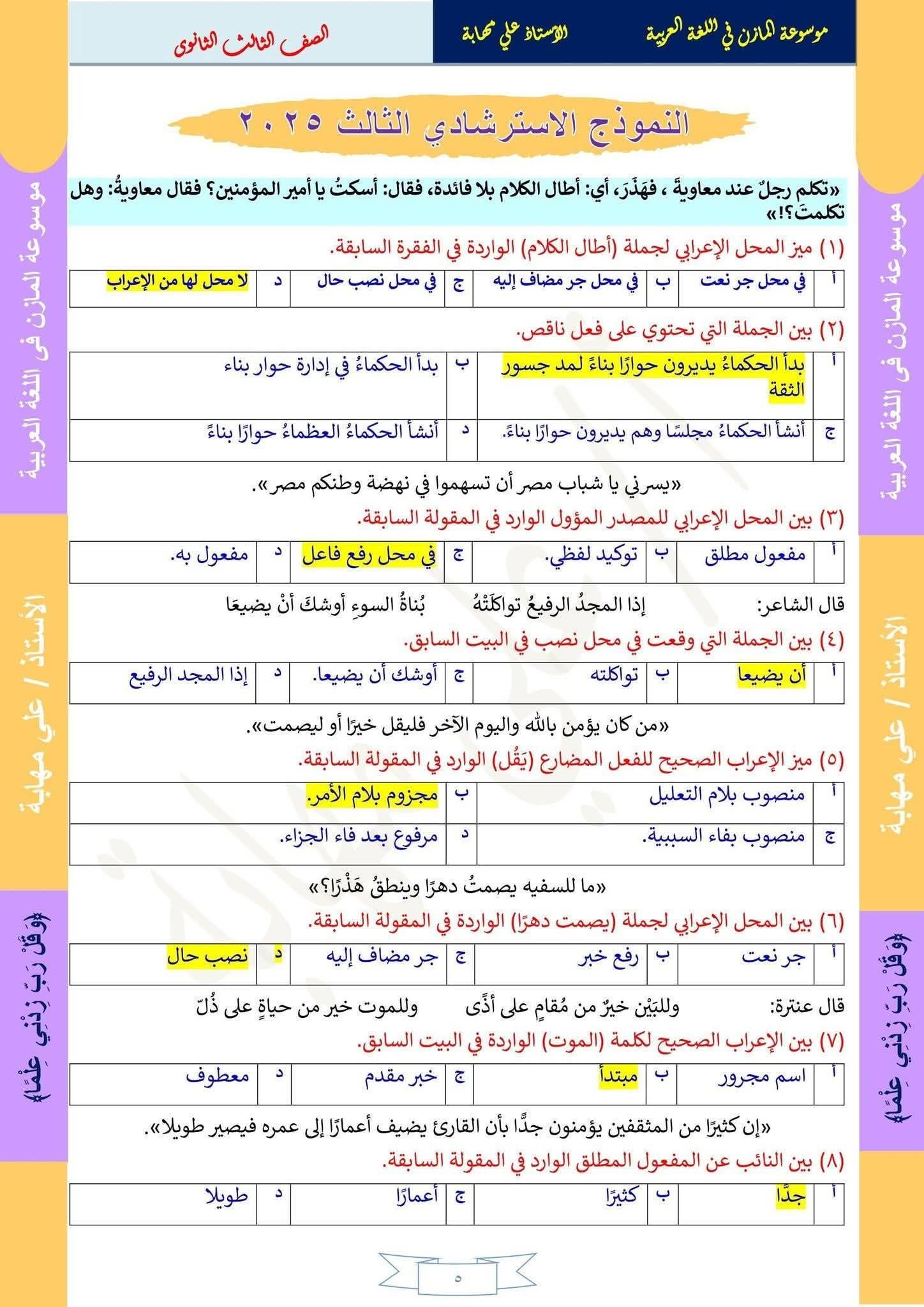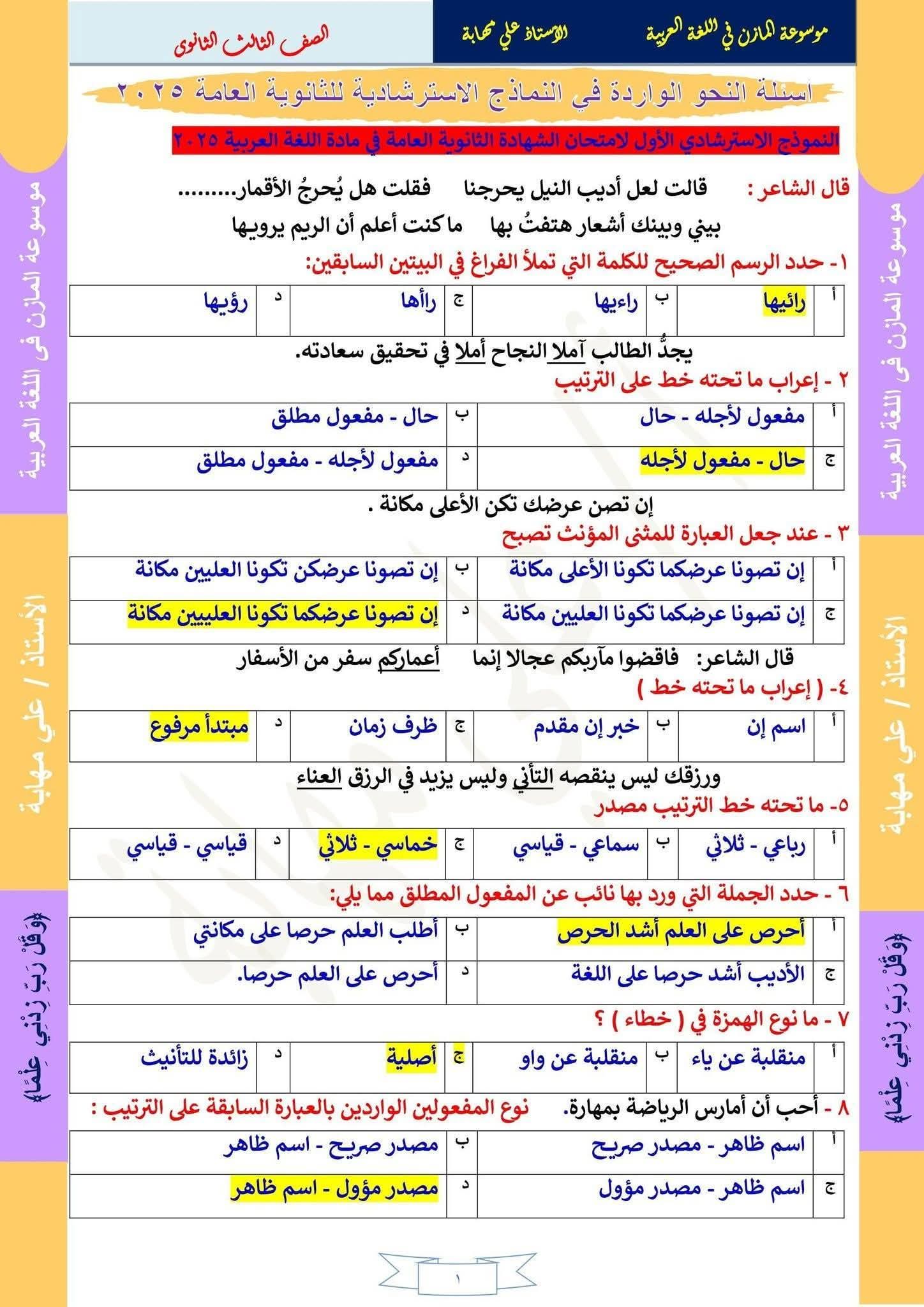 النماذج الاسترشادية للصف الثالث الثانوي 2025 اللغة العربية
