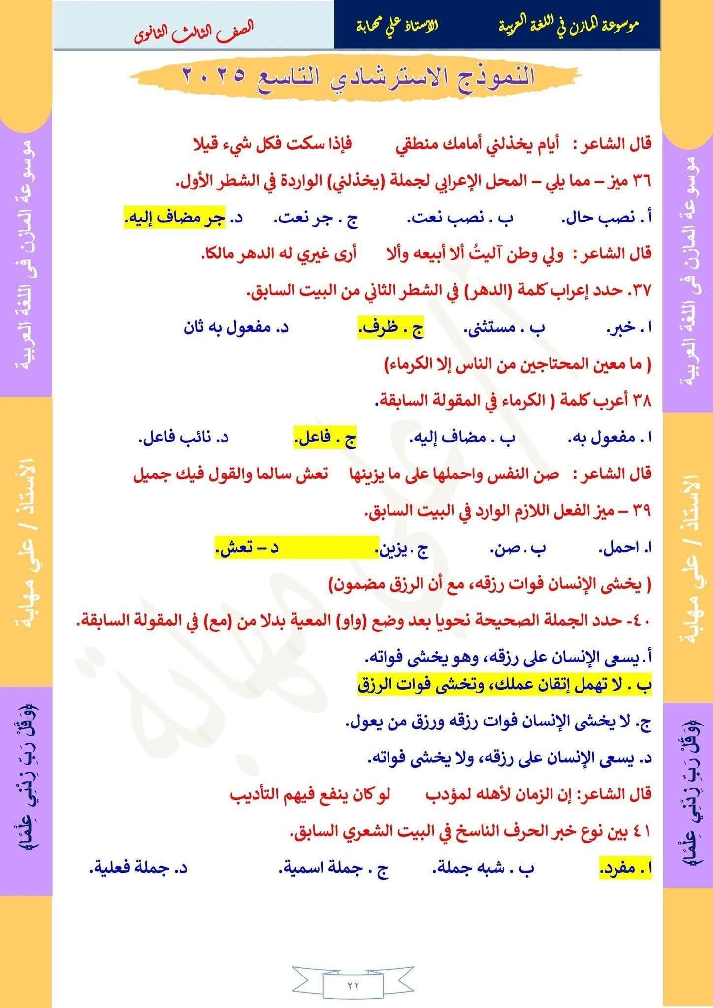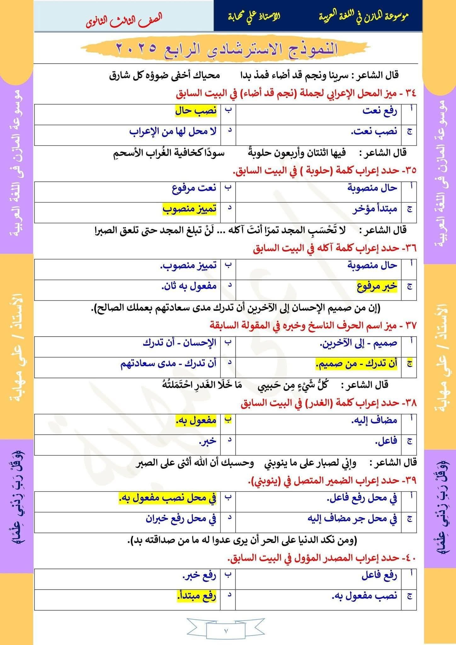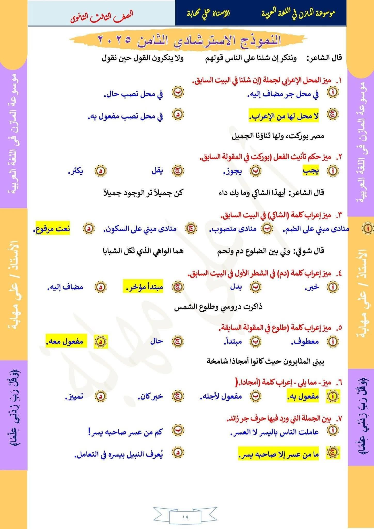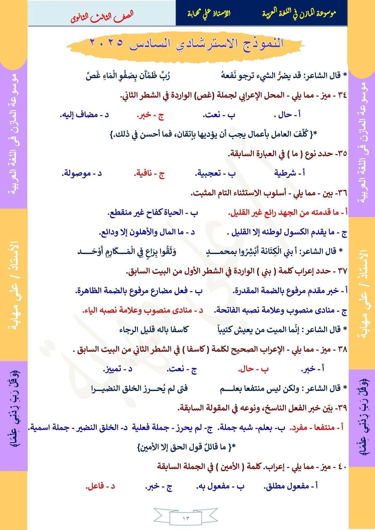 النماذج الاسترشادية للصف الثالث الثانوي 2025 اللغة العربية