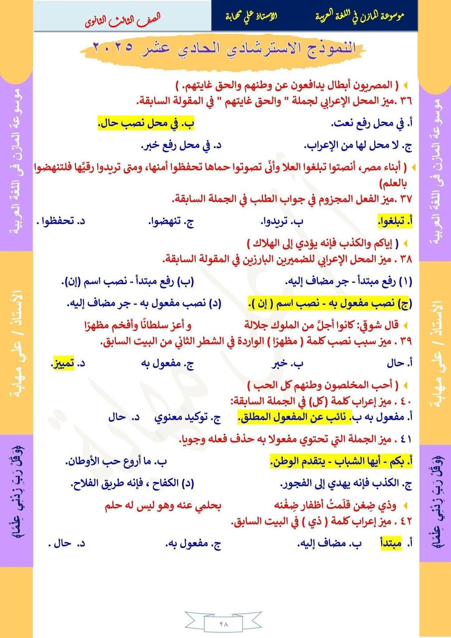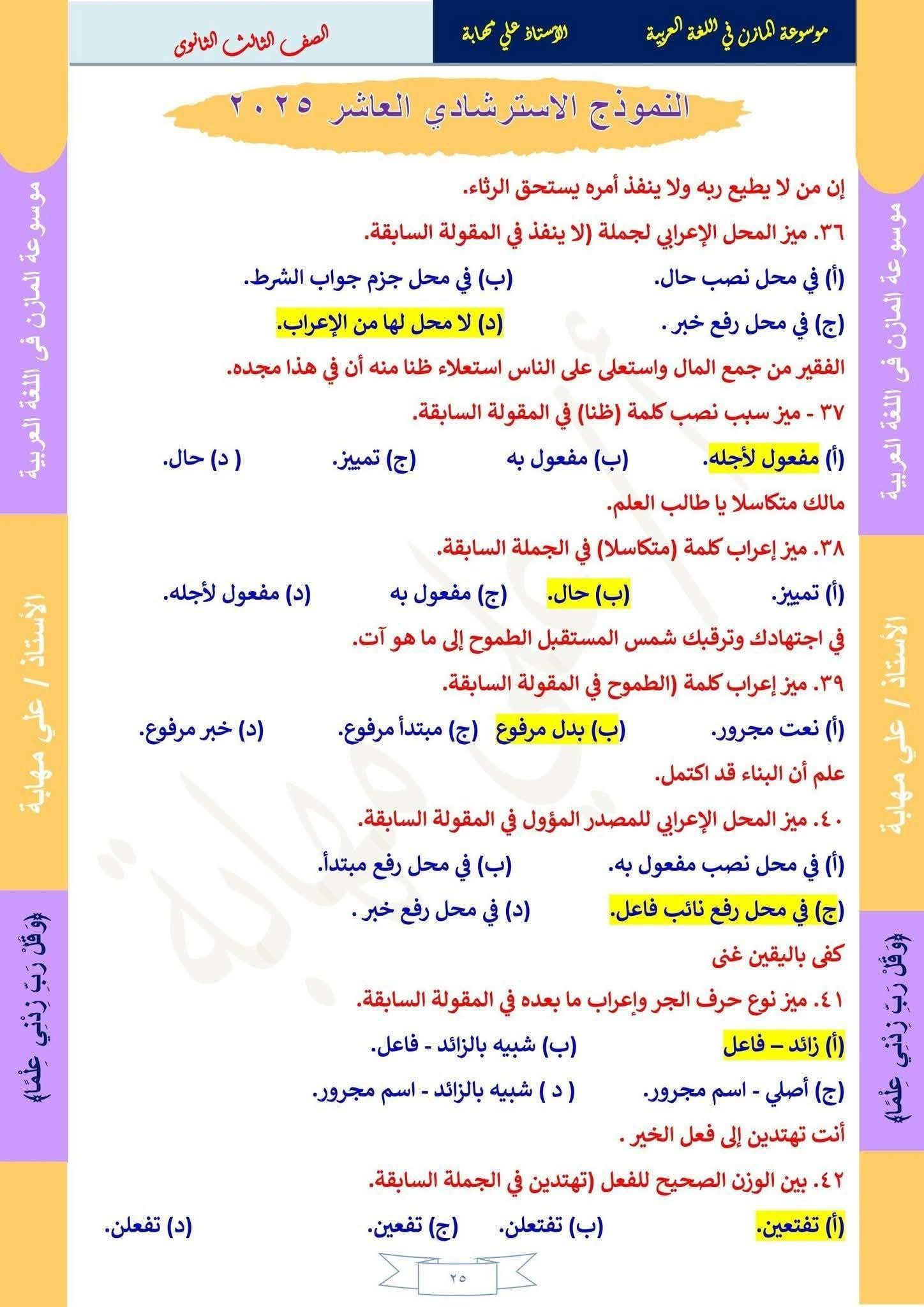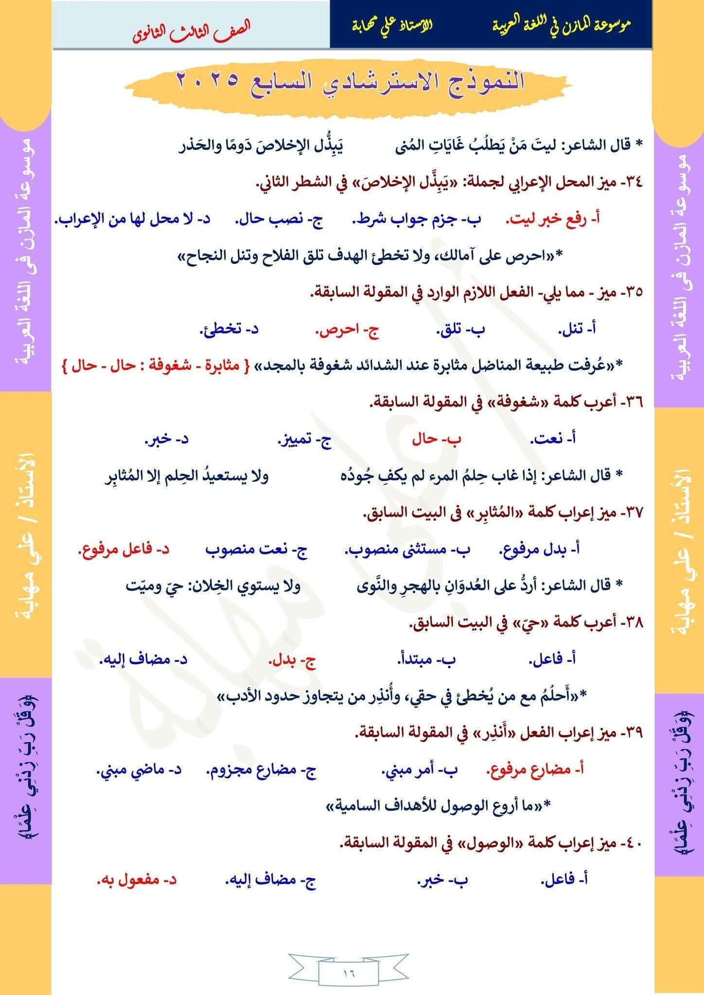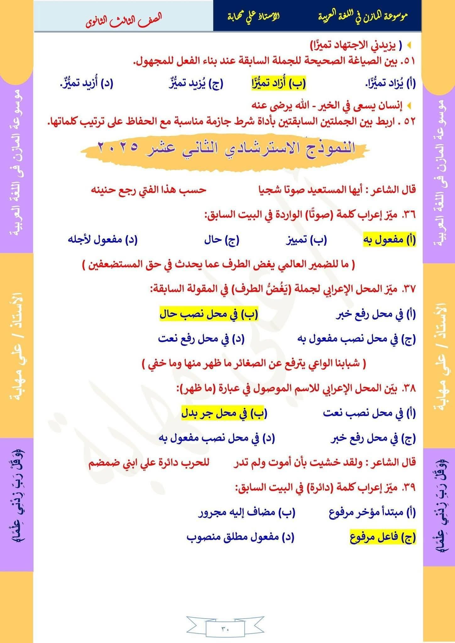 النماذج الاسترشادية للصف الثالث الثانوي 2025 اللغة العربية
