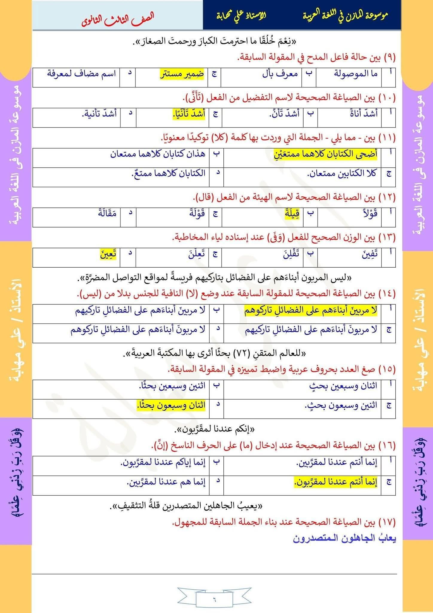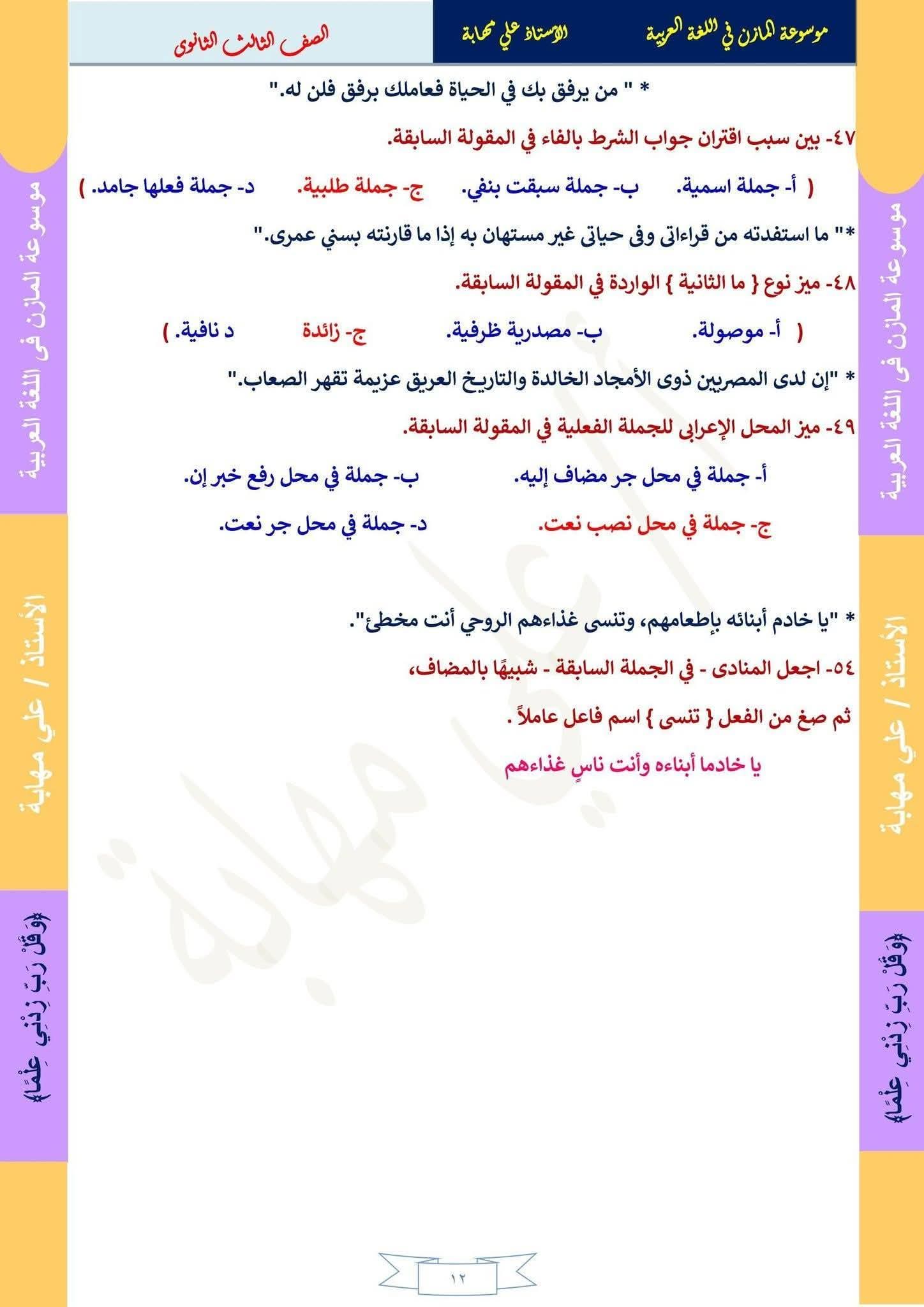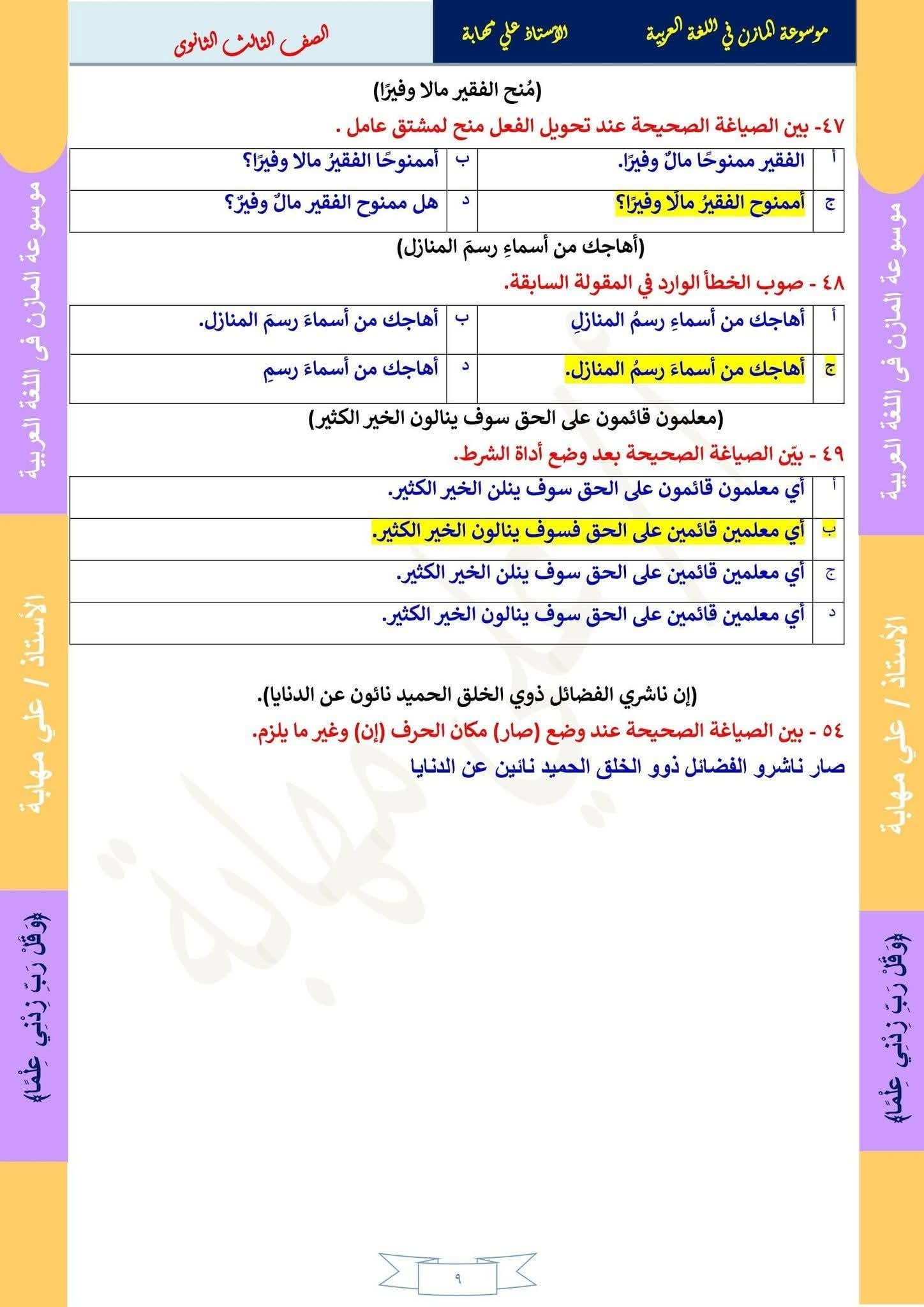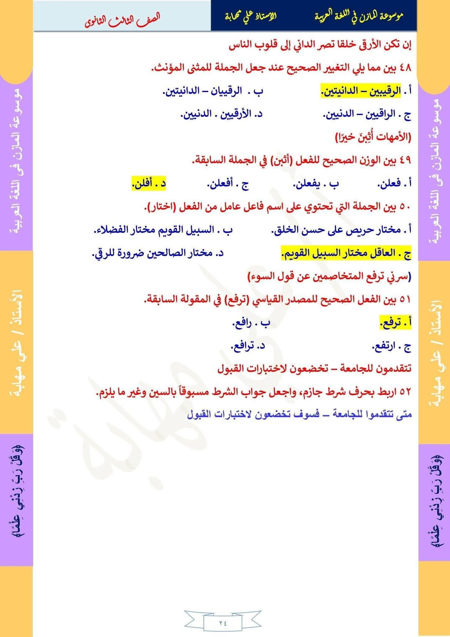 النماذج الاسترشادية للصف الثالث الثانوي 2025 اللغة العربية