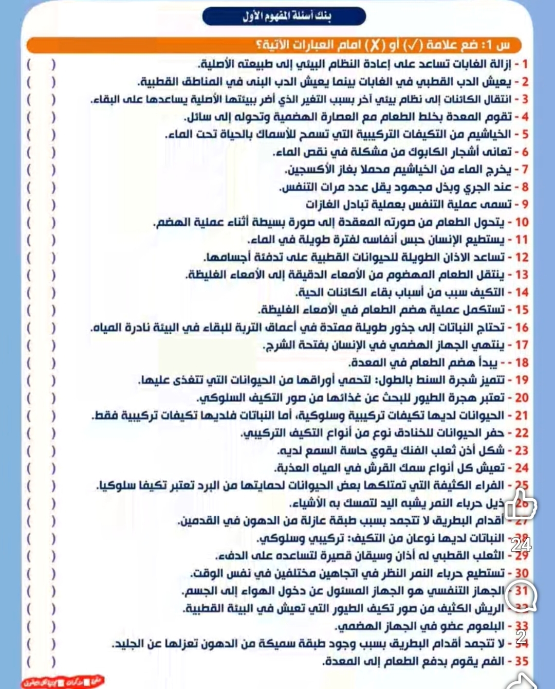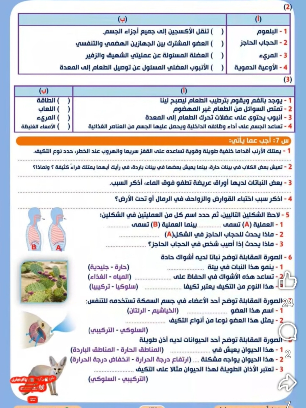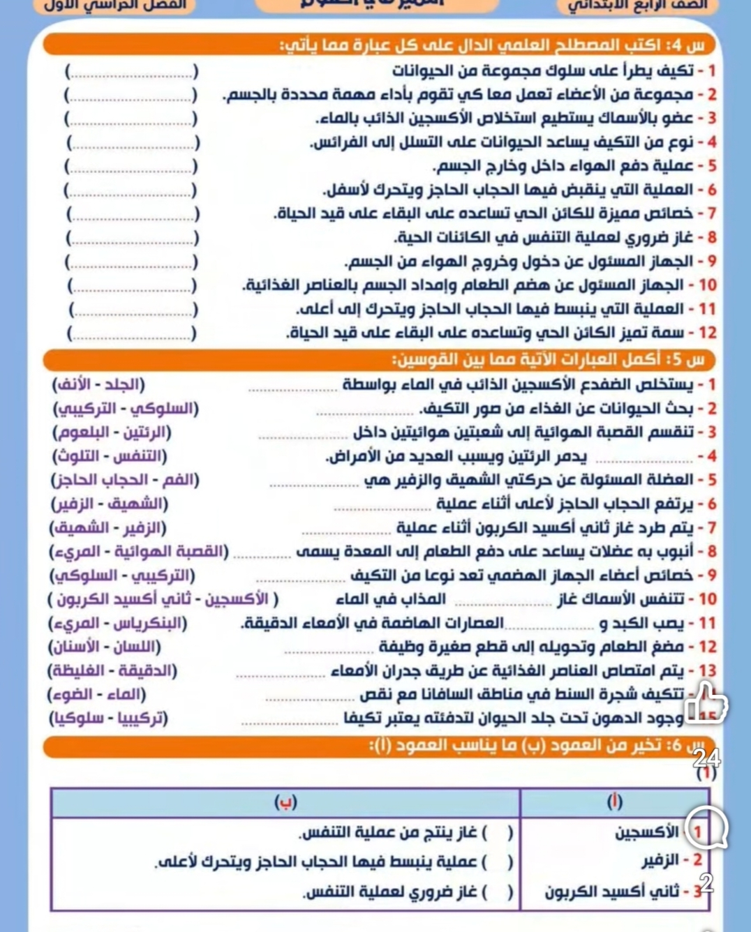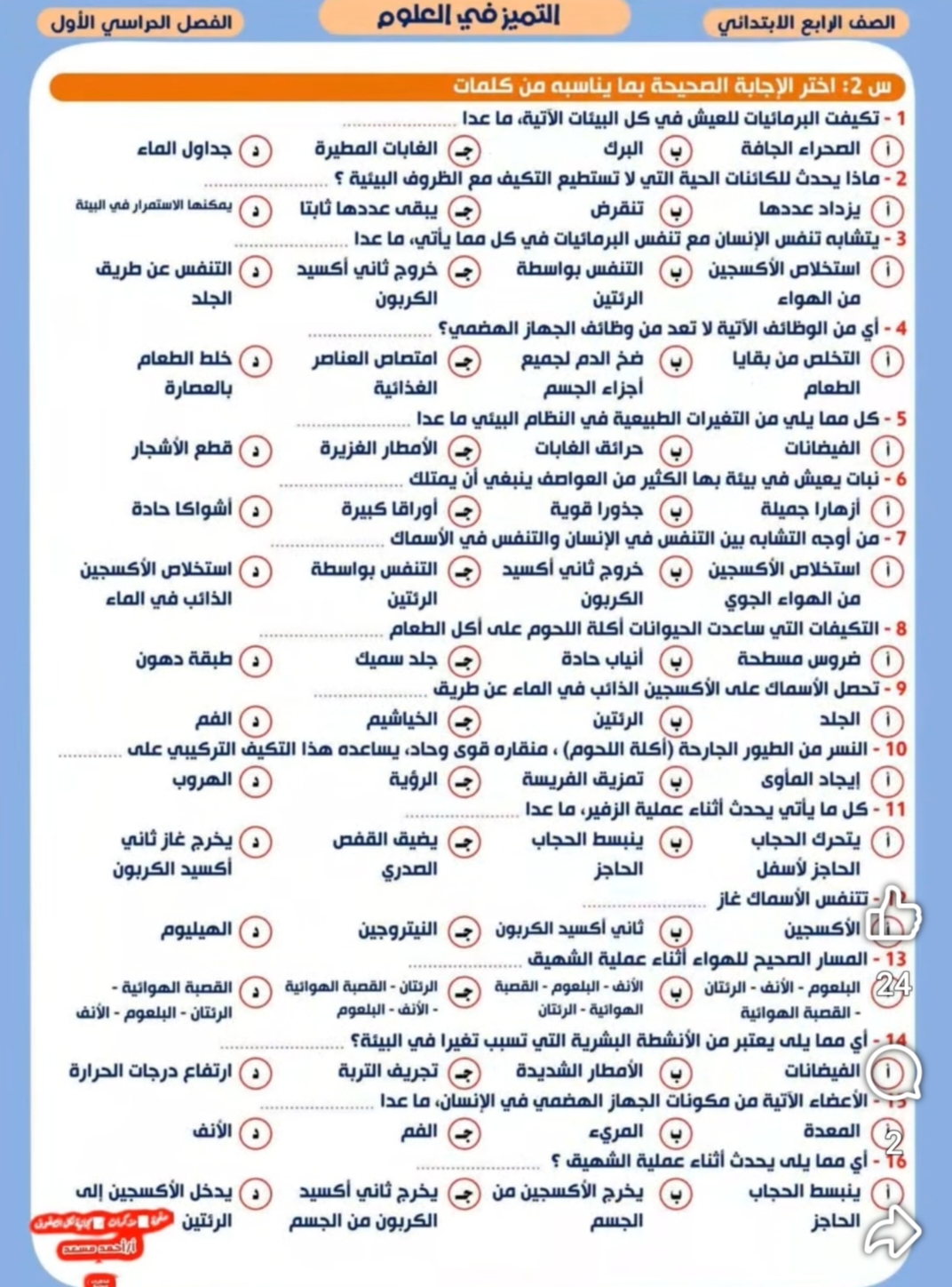 نماذج امتحان علوم للصف الرابع الابتدائي المنهج الجديد