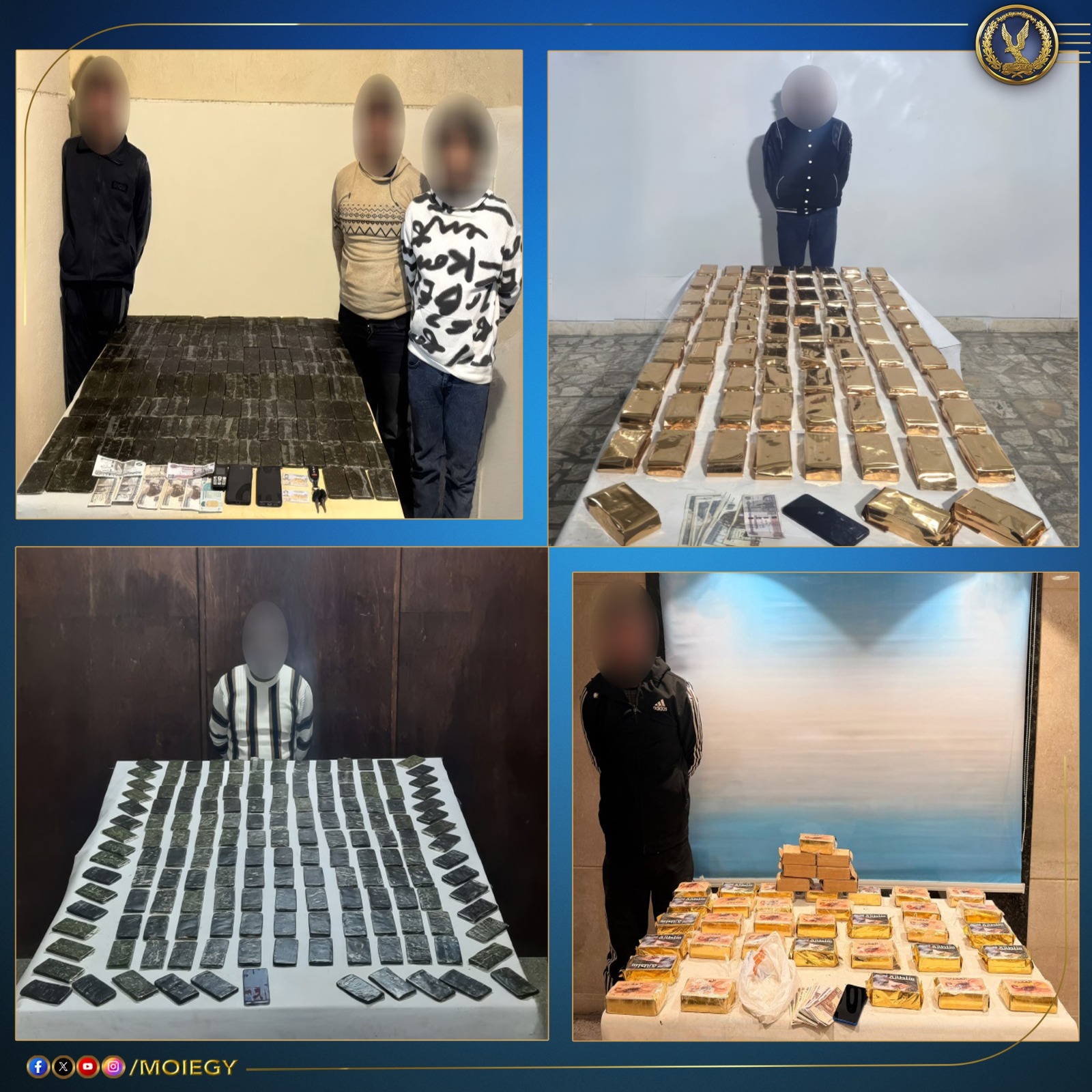 كما تم ضبط باقي عناصر تلك البؤر وبحوزتهم قرابة نصف طن من المواد المخدرة المتنوعة “حشيش، هيروين، شابو”، و15 قطعة سلاح ناري “9 بنادق آلية، 3 بنادق خرطوش، 3 فرد خرطوش”، وقُدرت القيمة المالية للمواد المخدرة المضبوطة بأكثر من 50 مليون جنيه.