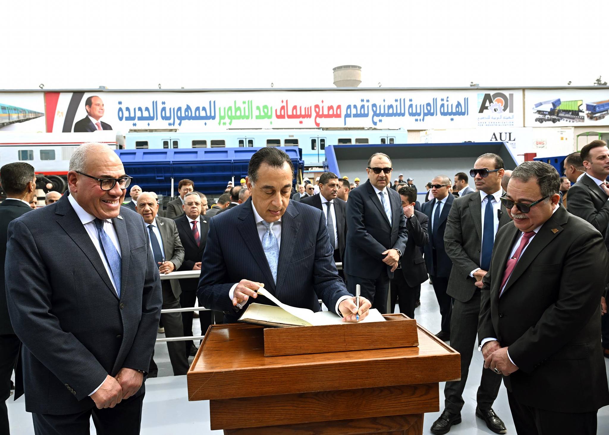 وخلال تواجده بالمصنع، سطر رئيس الوزراء كلمة جاء فيها : أتشرف اليوم بزيارتي الثانية لهذا الصرح الصناعي العملاق "سيماف" بعد زيارتي الأولى له منذ سنوات؛ حيث لمست مدى التطوير الذي تم في المصنع منذ الزيارة الأولى.. مع تمنياتي لإدارة الهيئة العربية للتصنيع والمصنع بالنجاح والتقدم.