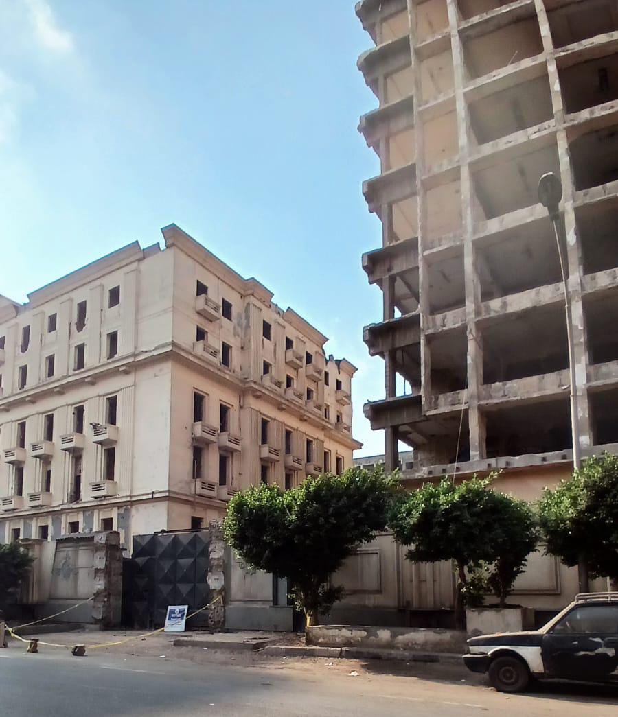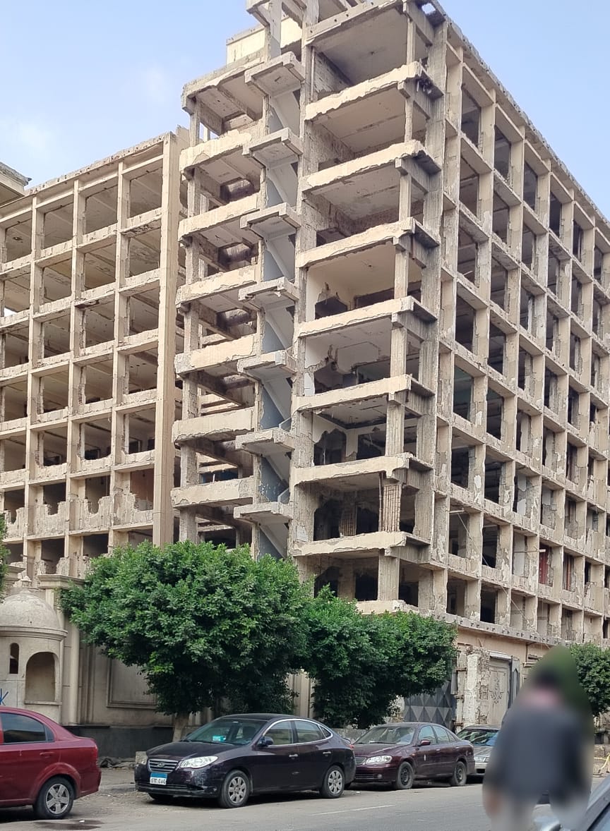 لم يكن هذا المبنى استثناءً، فخلفه مباشرة، ظهرت مبانٍ أخرى بلا نوافذ، صامتة ومغلقة، تطل بواجهاتها الفارغة على شارع عابدين، لتشكّل لوحة عمرانية خالية من الحياة، كأن الزمن توقف عندها منذ لحظة واحدة ولم يتحرّك بعدها.
