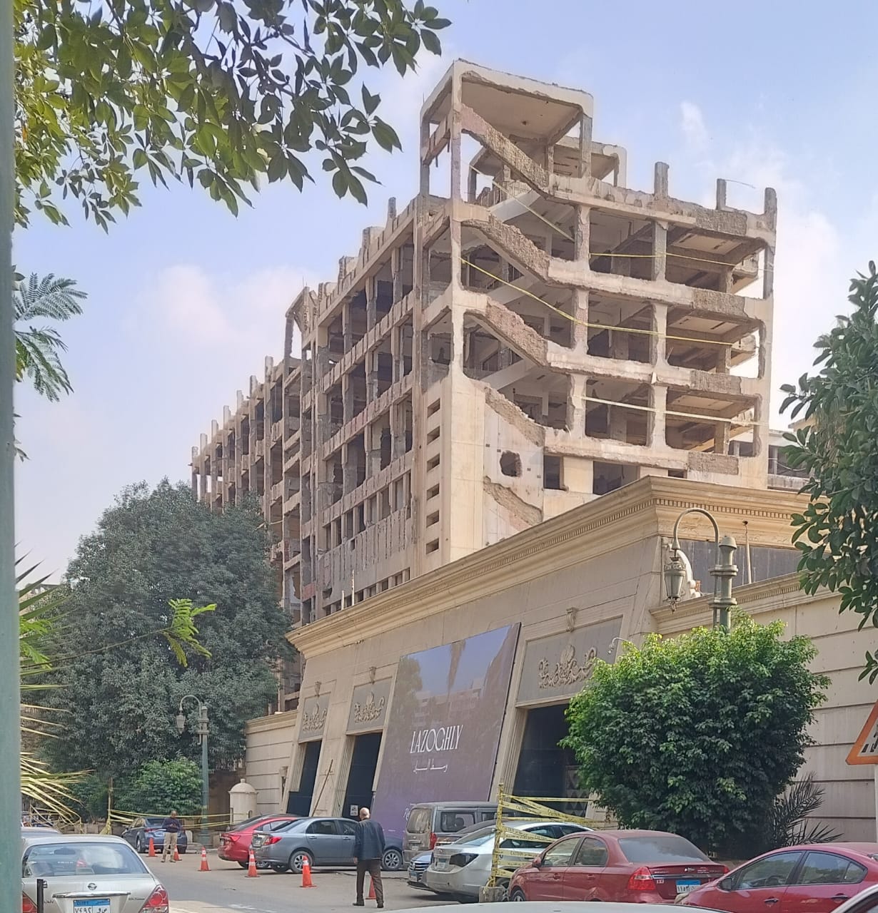 في الميدان، ينتصب مبنى ضخم مكوّن من تسعة طوابق، ظل محتضنًا وزارة الداخلية لمدة 159 عامًا قبل نقل مقرها لاحقًا عام 2016، والآن يبدو المبنى مجرد هيكل خرساني مكشوف، جدرانه مفقودة، ولم يتبقَ منه سوى الأسقف والأعمدة العارية، تصدره ثلاث بوابات حديدية كبيرة، يصطف بجوارها عدد محدود من السيارات، بينما تحيط به أسوار مرتفعة تفصل المكان عن المارة.