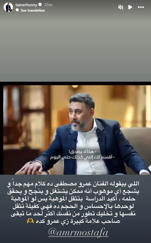 وعلّق تامر حسني على الفيديو، مؤكدا أن ما قاله عمرو مصطفى يحمل رسالة مهمة ومُلهمة، حيث كتب: “الكلام ده مهم جدًا وبيشجّع أي موهوب إنه يشتغل وينجح ويحقق حلمه”.