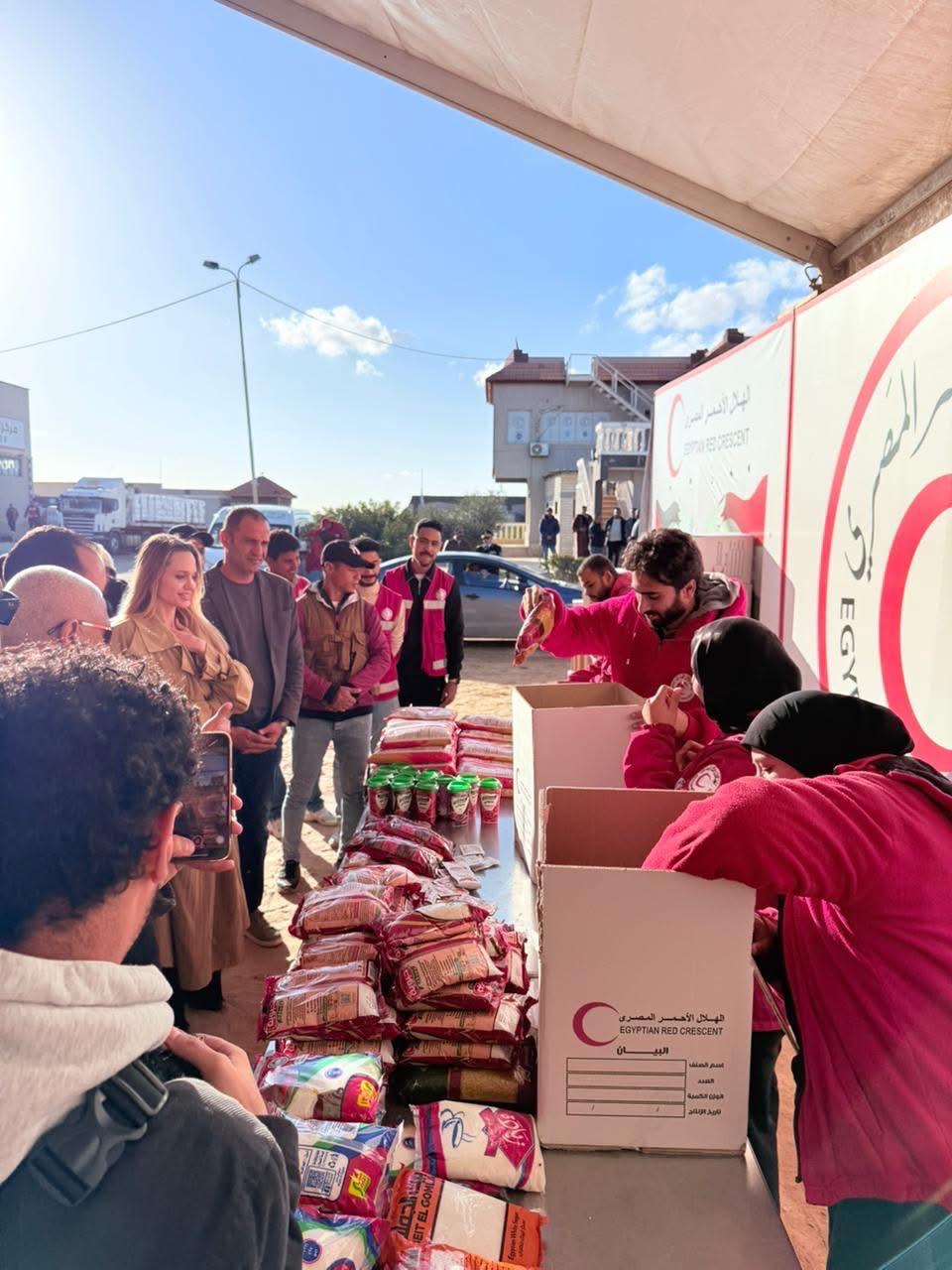 أنجلينا جولي تُشيد بدور الهلال الأحمر المصري وتشارك في تعبئة صناديق مساعدات غزة