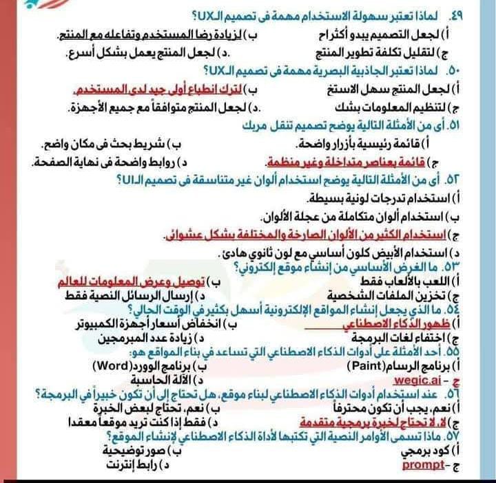 مراجعة حاسب آلي للصف الثاني الإعدادي الترم الأول 2026