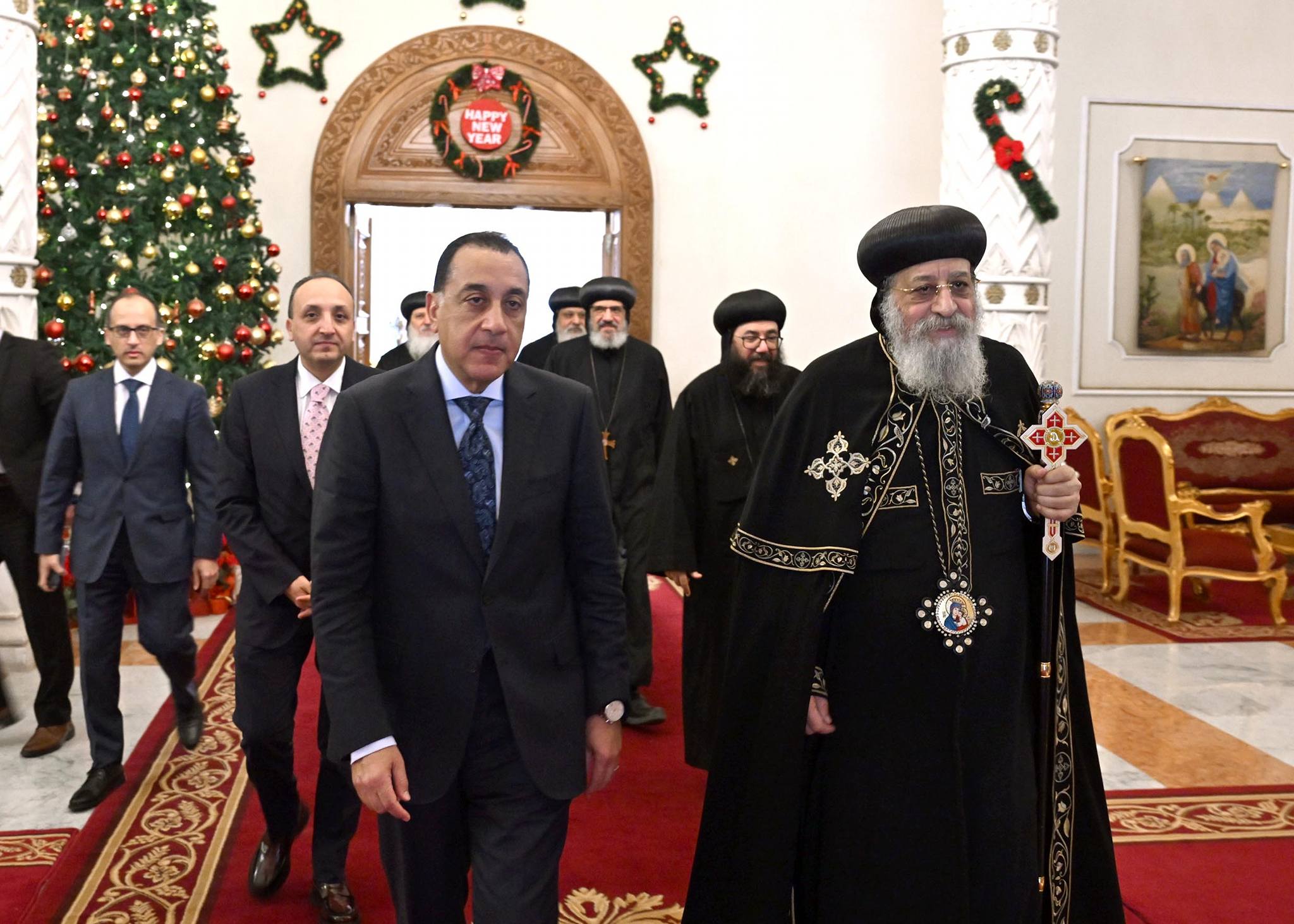 من جانبه، أعرب البابا تواضروس الثاني، عن خالص شكره وتقديره لزيارة رئيس مجلس الوزراء لمقر الكاتدرائية، والتي تجسد عمق الروابط الأخوية التي تجمع أبناء الوطن الواحد، وتعكس روح المحبة بين المصريين جميعًا، متمنيا أن يكون العام الجديد سعيدا علينا جميعا وعلى وطننا الغالي.