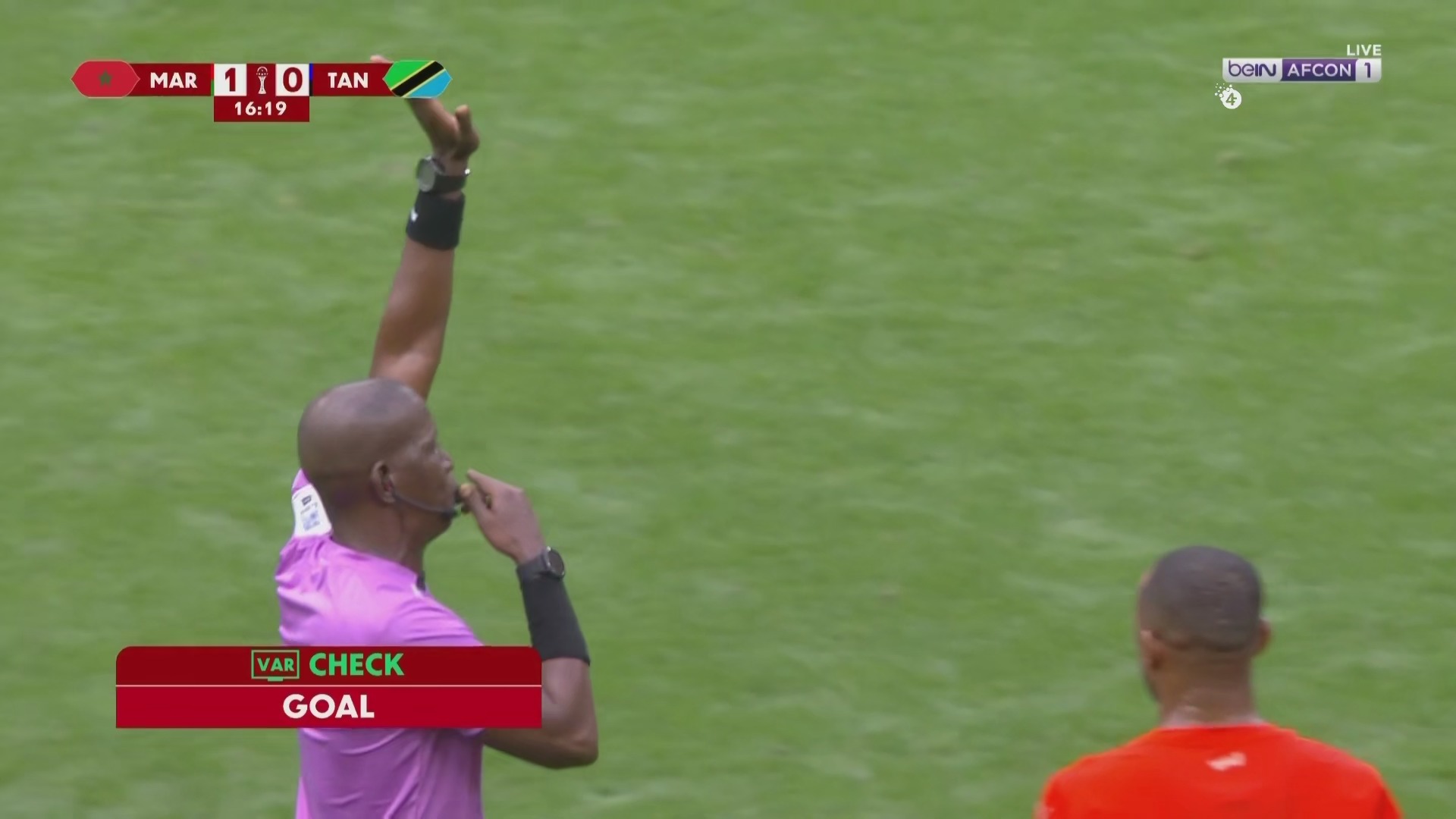 كما تدخل حكم الفيديو المساعد (VAR) في الدقيقة 15، وألغى هدفًا للمغرب بداعي التسلل على اللاعب إسماعيل صيباري.