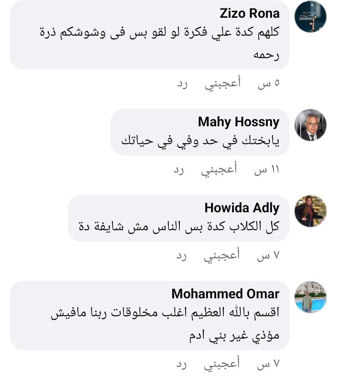ذكر أحد التعليقات: “يابختك لو فيه حد وفي في حياتك”، وتابع آخر: كل الكلاب كدا بس الناس مش فاهمة"، أما عن أحد الحسابات التي تناولت طبيعة الكلاب فقال :" أغلب مخلوقات ربنا مش مؤذية مفيش مؤذي غير البني آدم"، وافقه آخر: كل الكلاب كدا بس الناس مش شايفة ده".